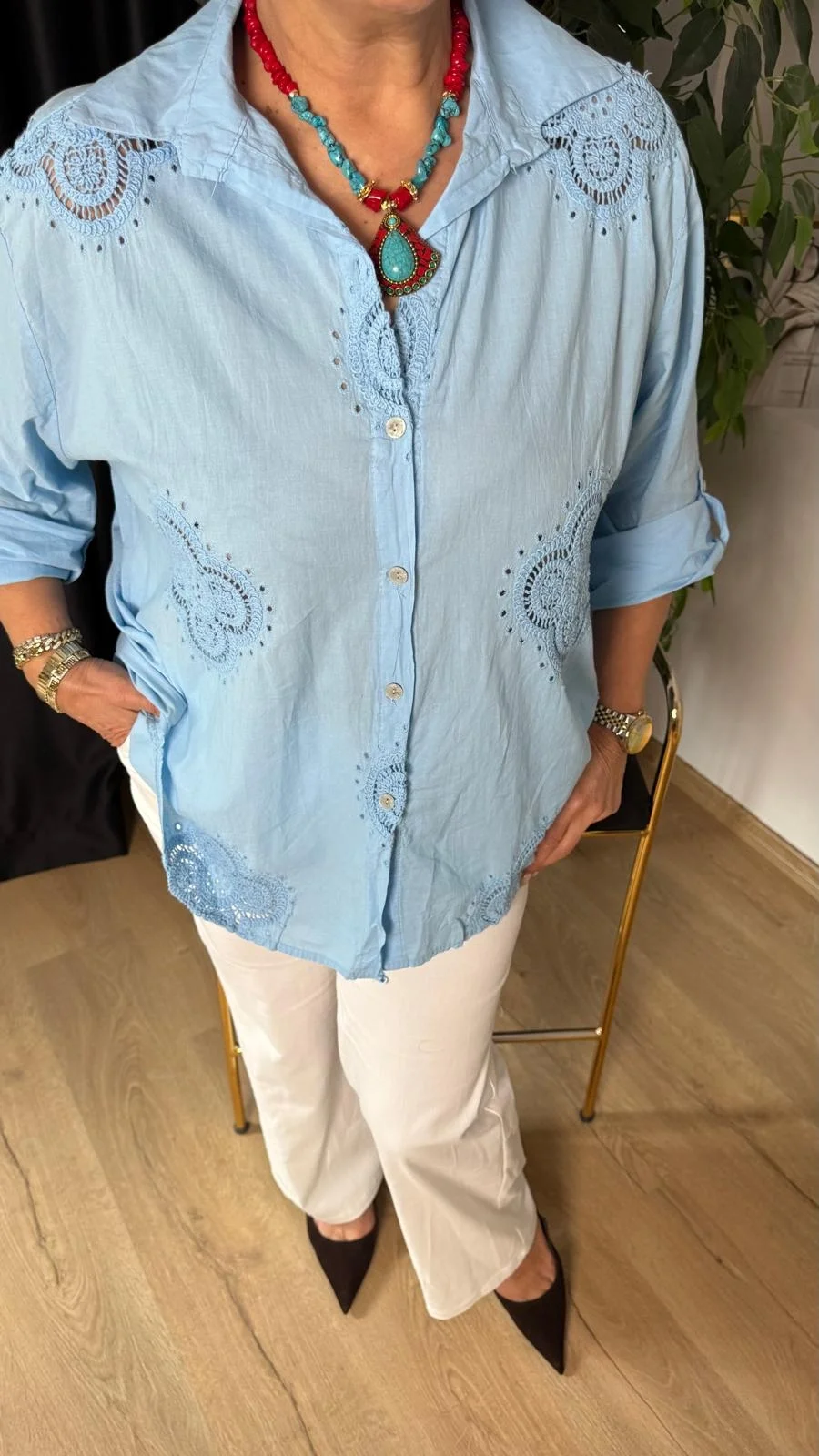 Bebe Mavisi 4 Yapraklı Yonca Desen Dantelli Gömlek 25005
