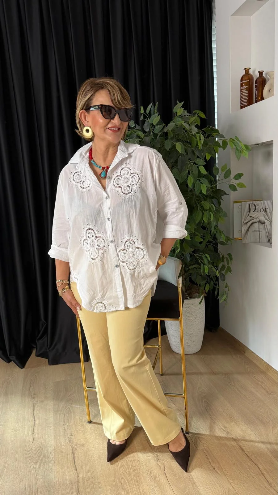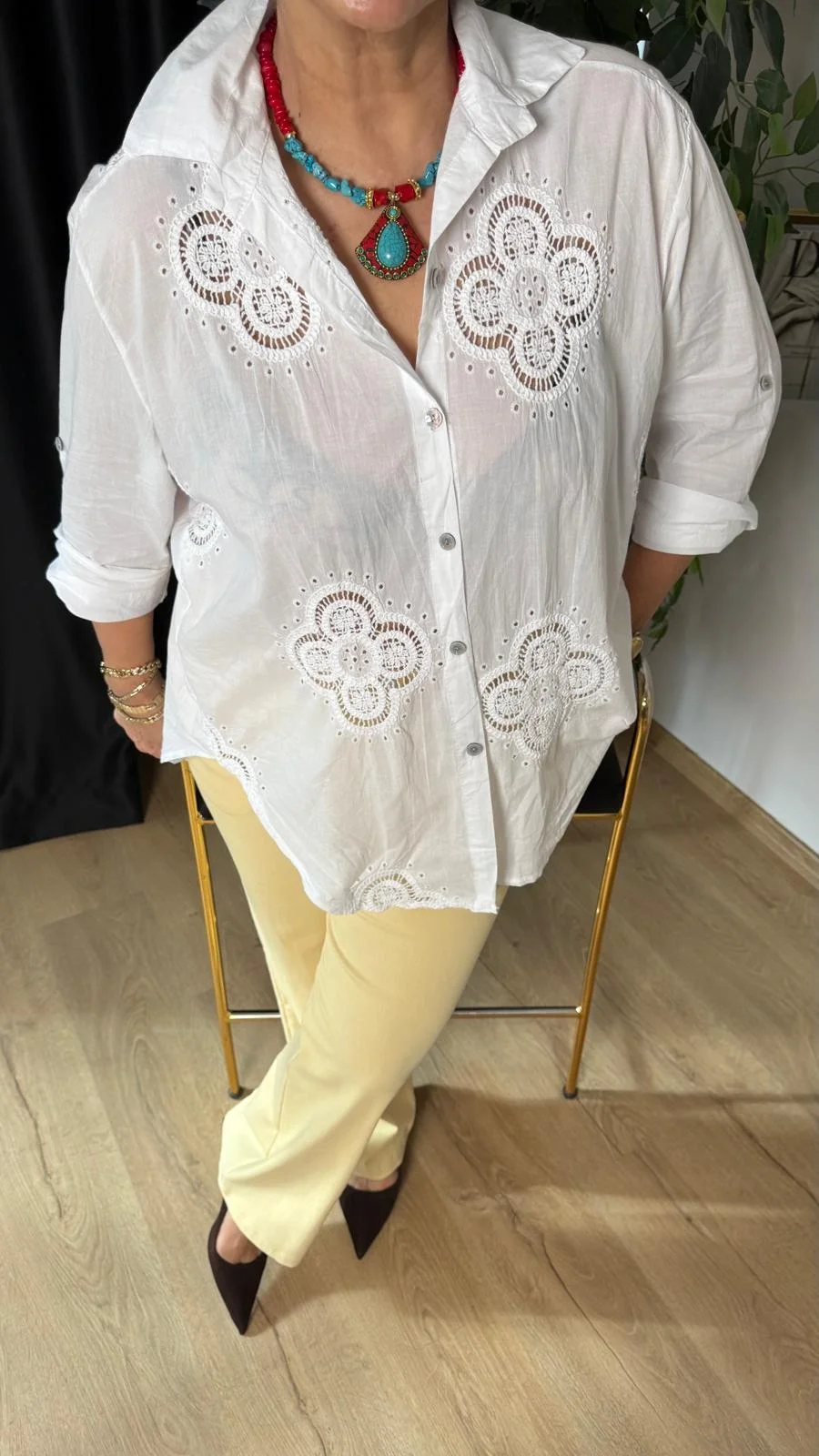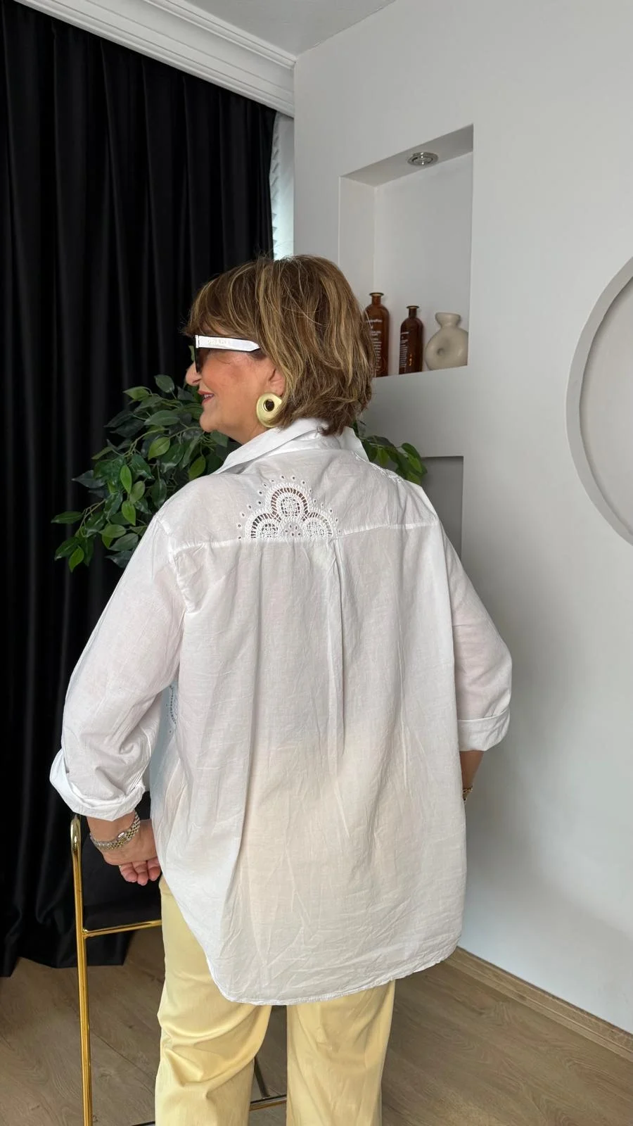 Beyaz 4 Yapraklı Yonca Desen Dantelli Gömlek 25005