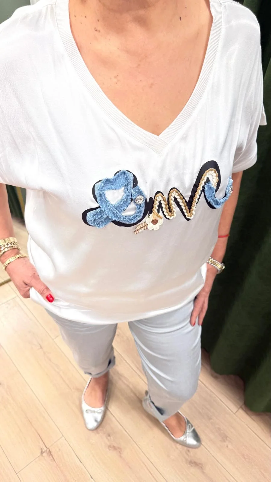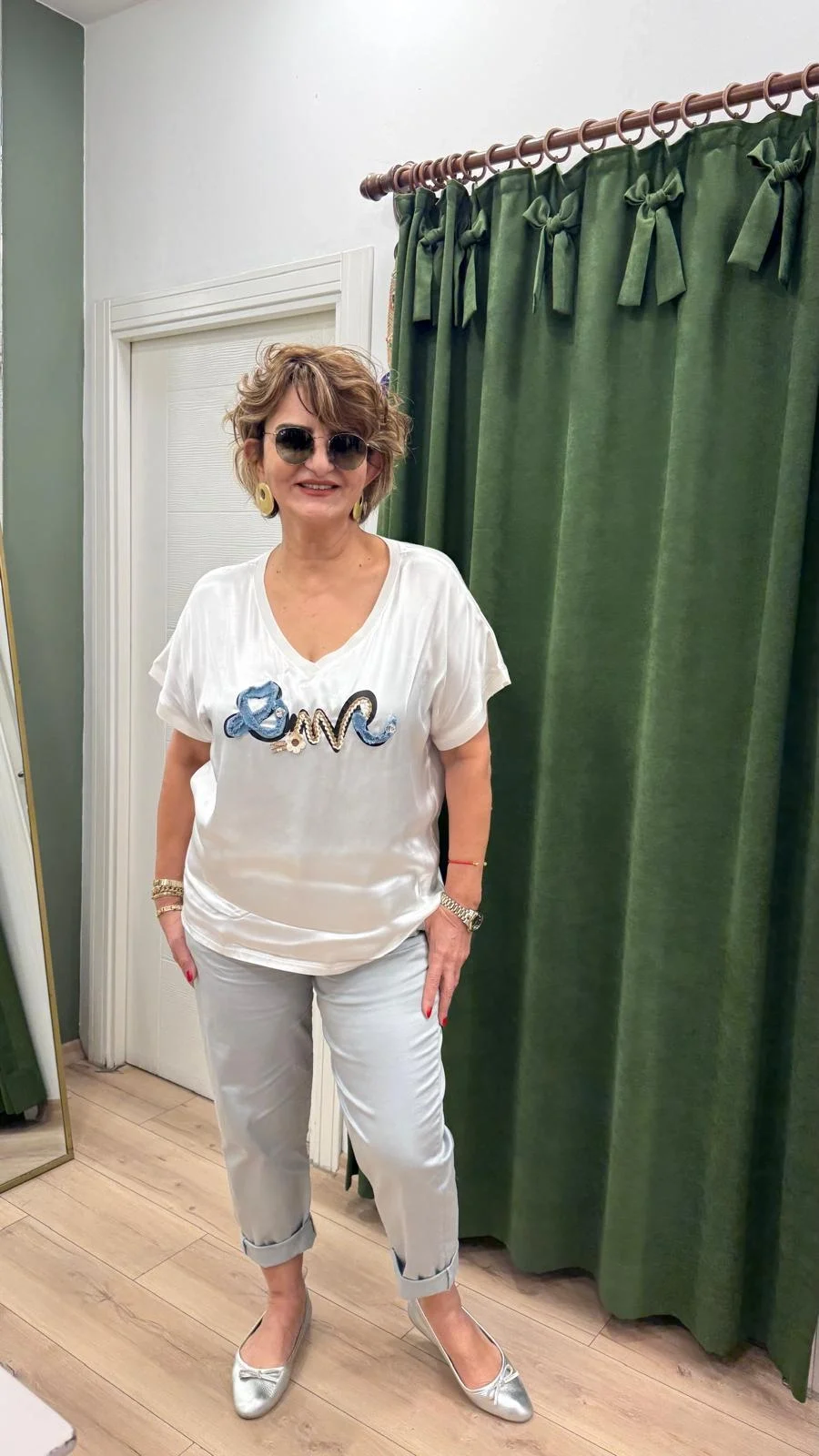 Beyaz Desenli Saten Bluz LVD