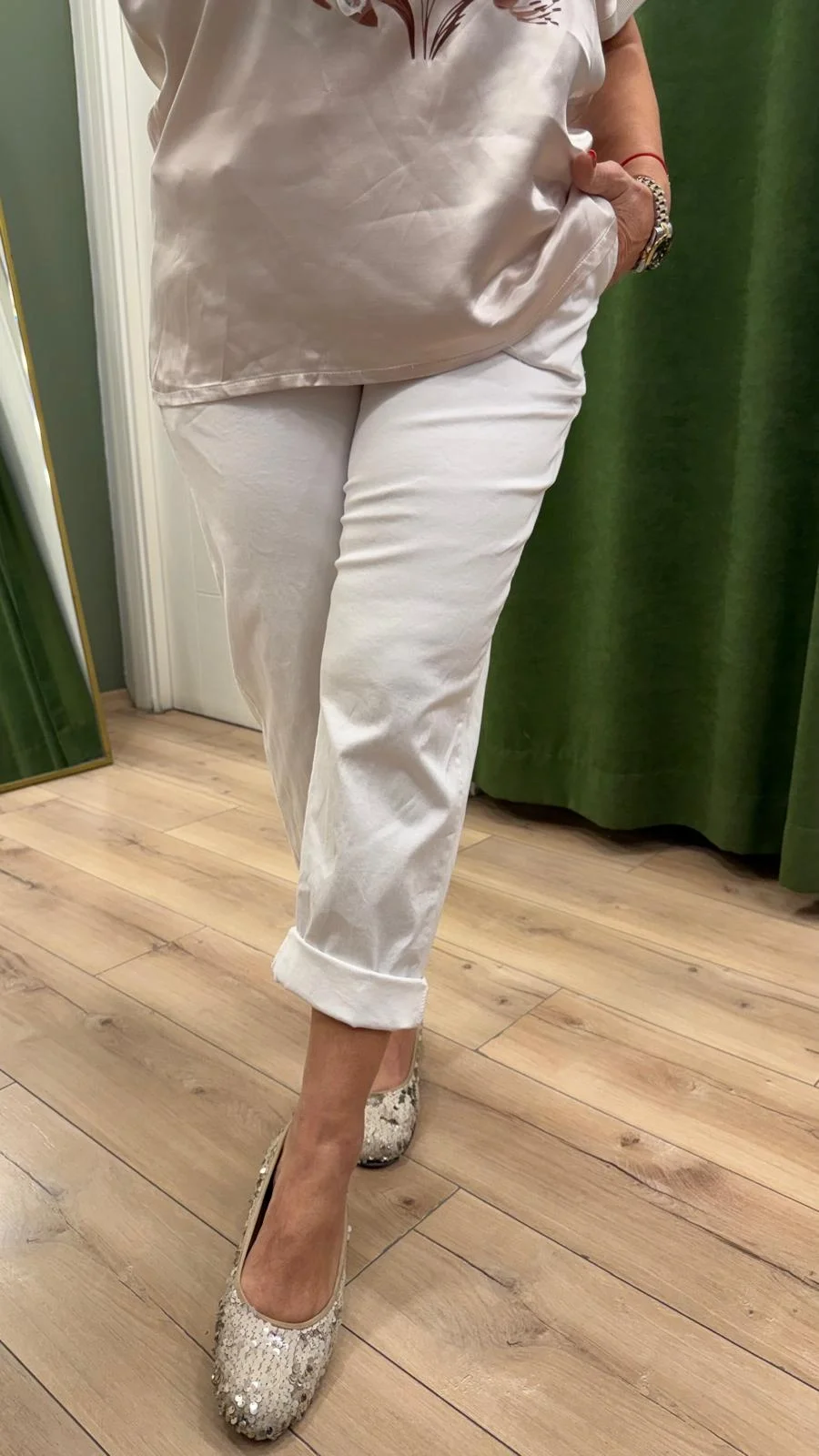 Beyaz Kemerli Likralı Pantolon LVD