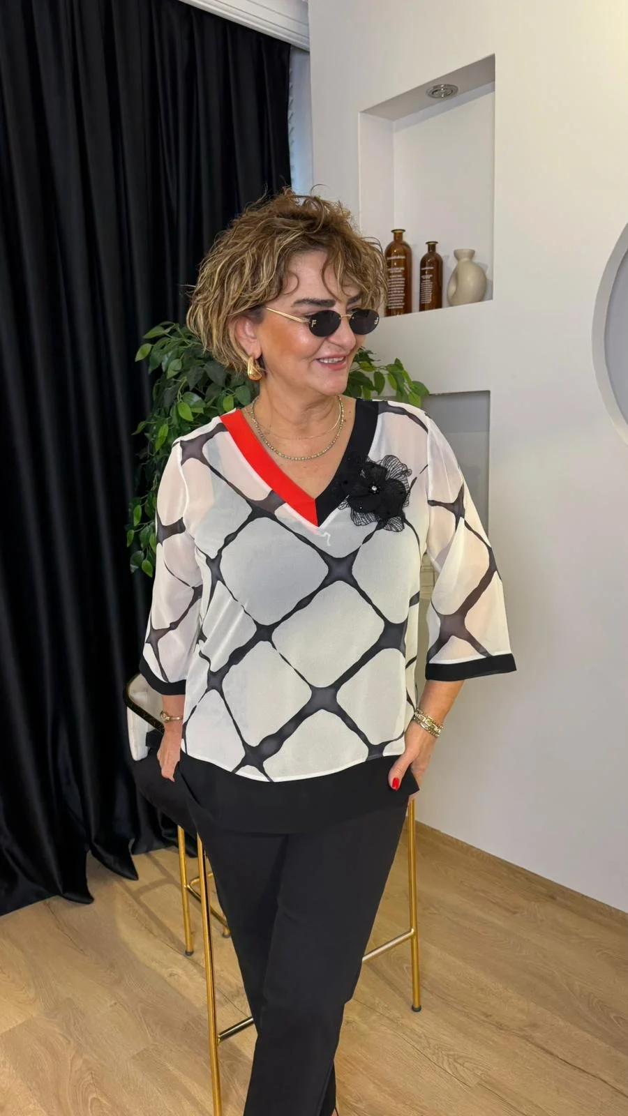 Ekru Şifon Bluz Takım 2087