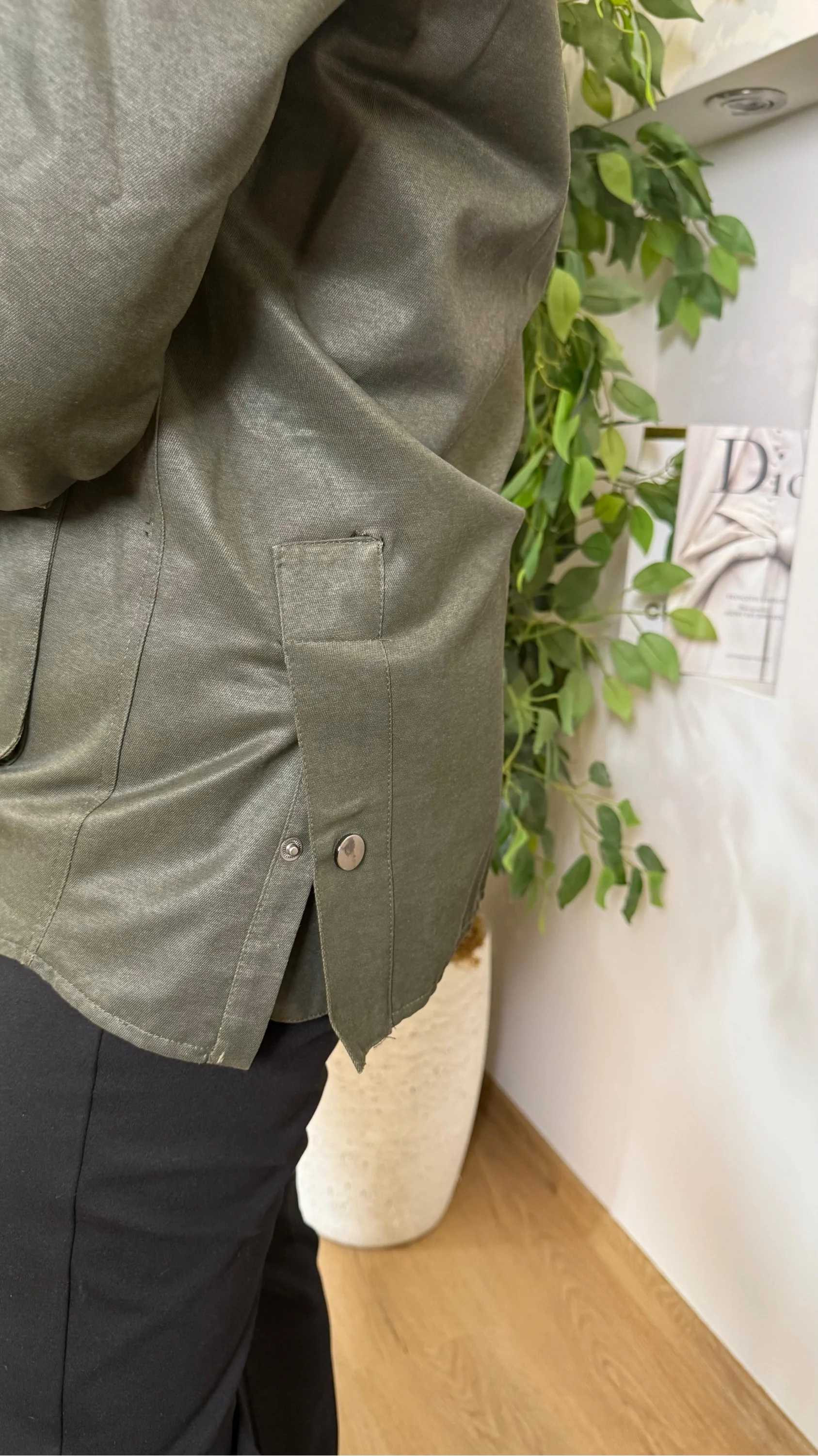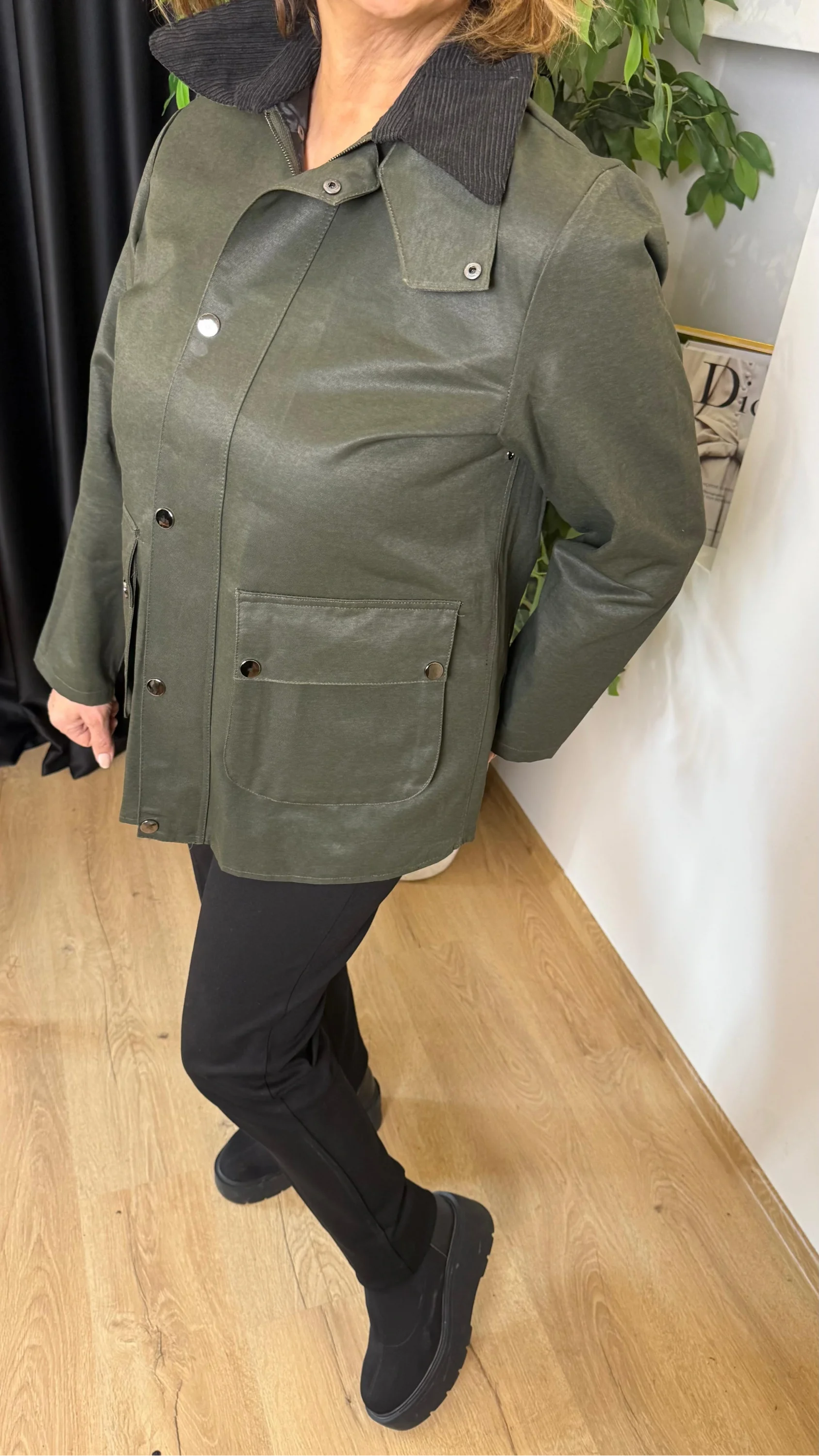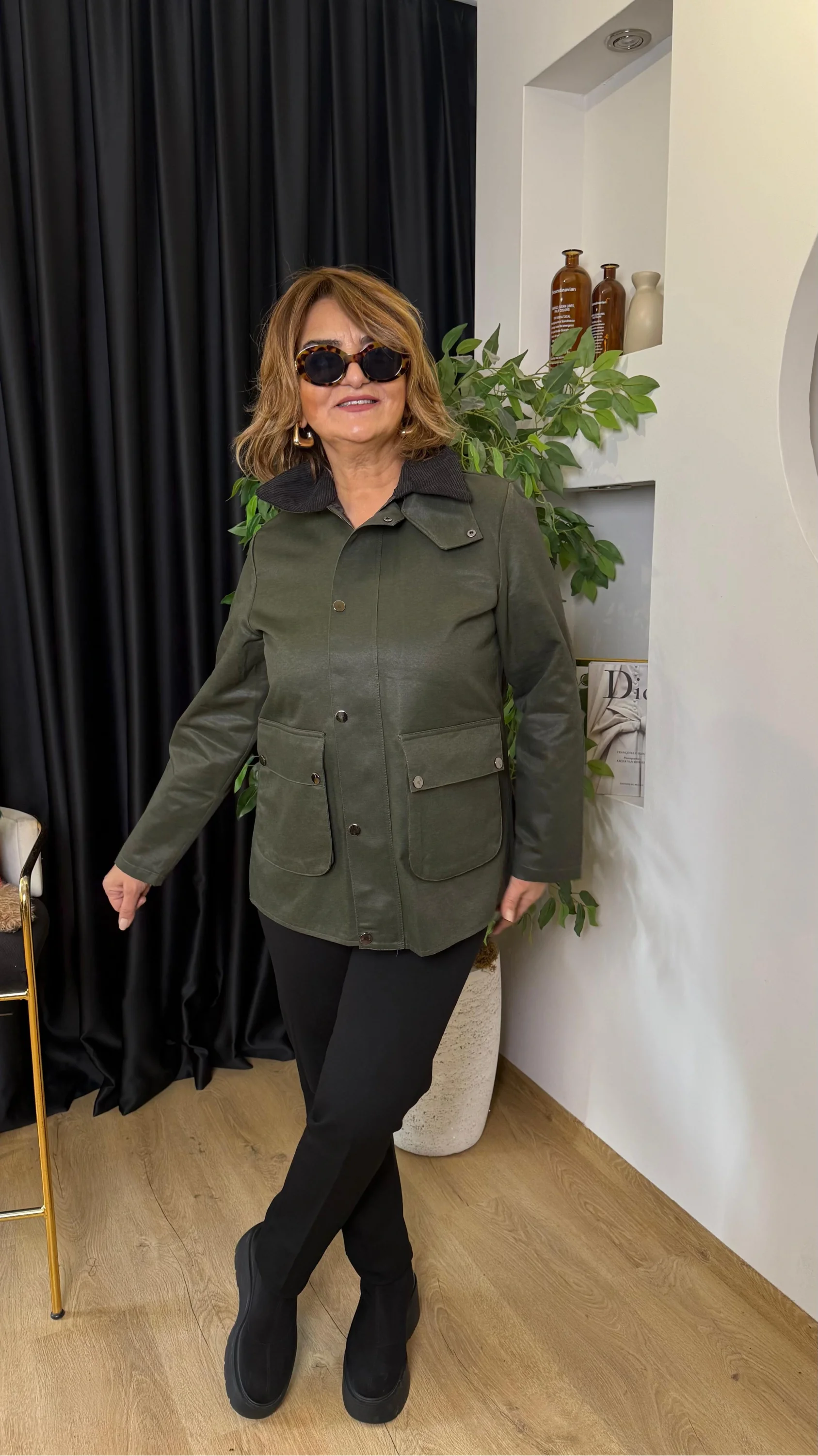 Haki Kadife Yaka Fermuarlı Kaban 91548