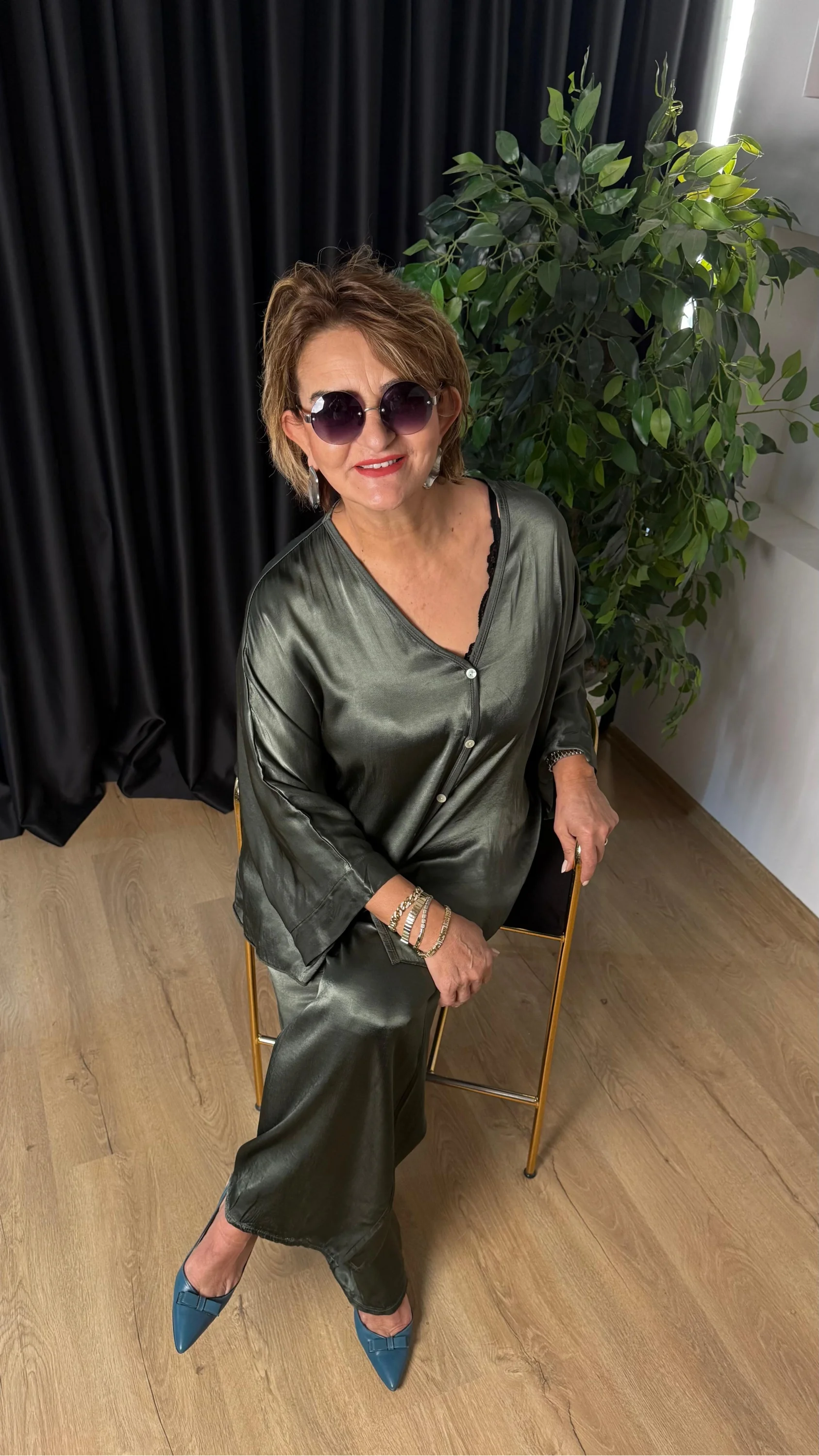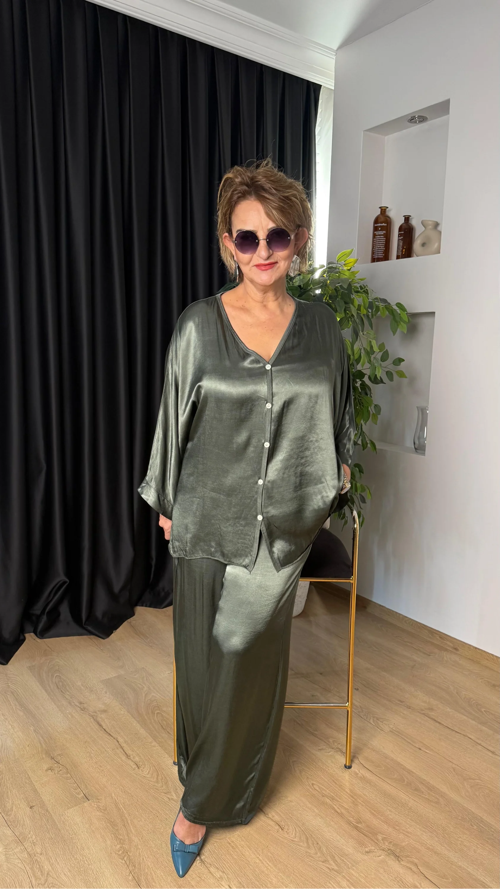 Haki Önü Düğmeli Saten Takım 2602XA36