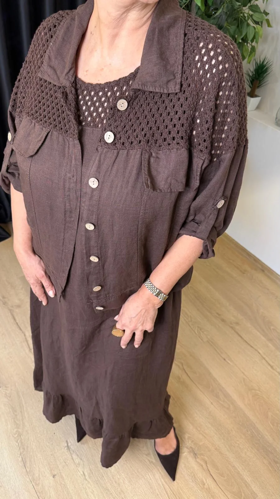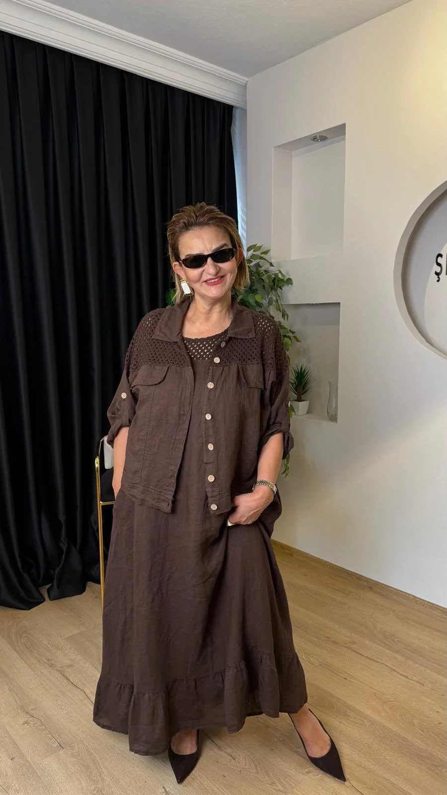 Kahve File Ceketli Takım LVD