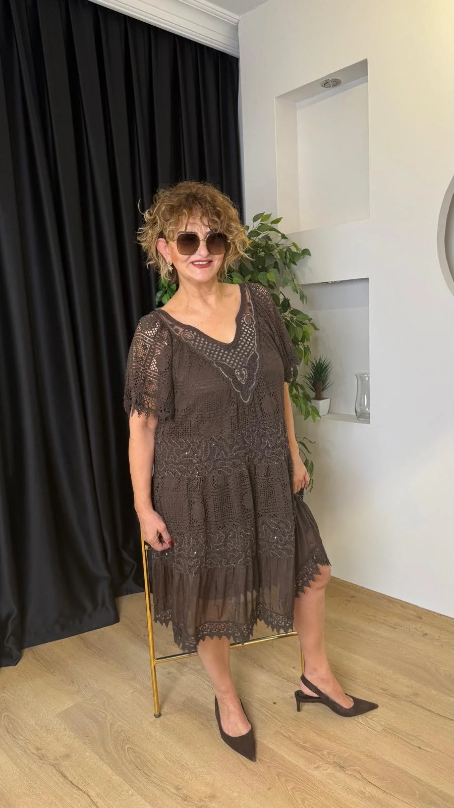 Kahve V Yaka Elbise 11534