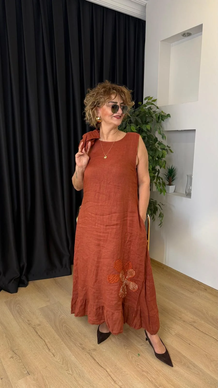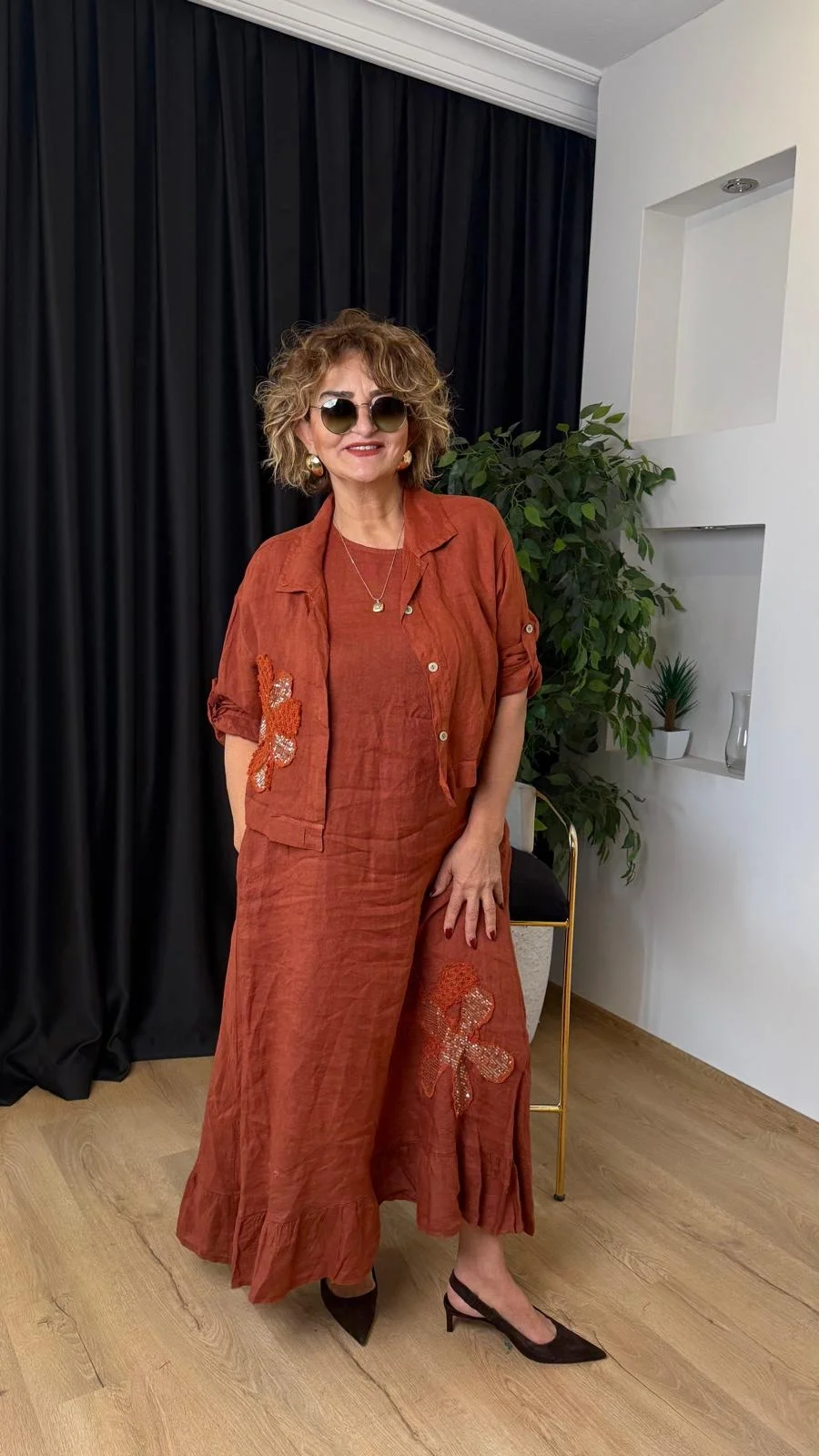 Kiremit Ceketli Keten Elbise LVD