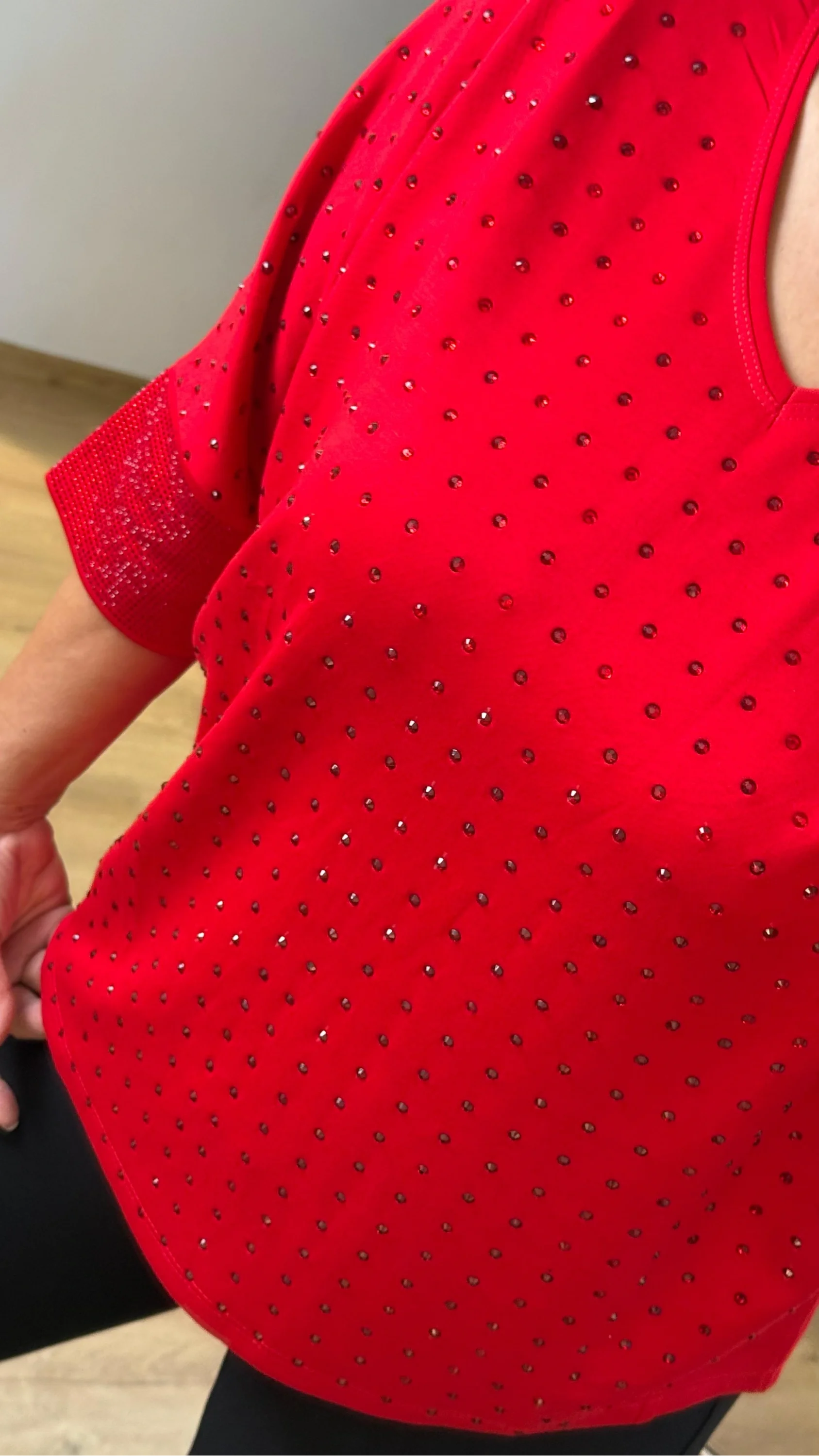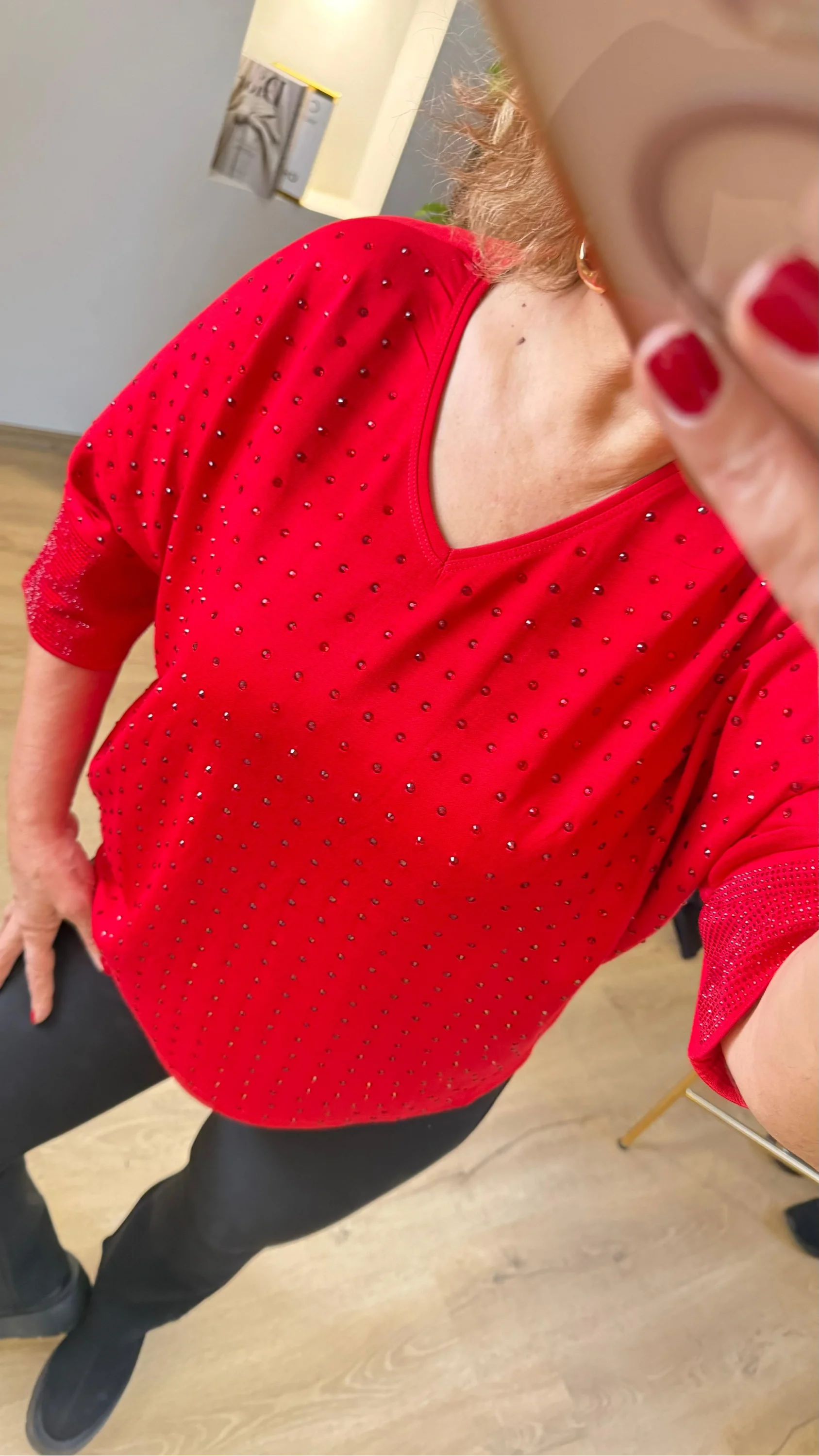 Kırmızı Taşlı V Yaka Bluz 000296-1
