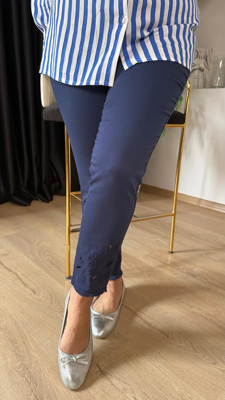 Lacivert Nakışlı Pantolon P402