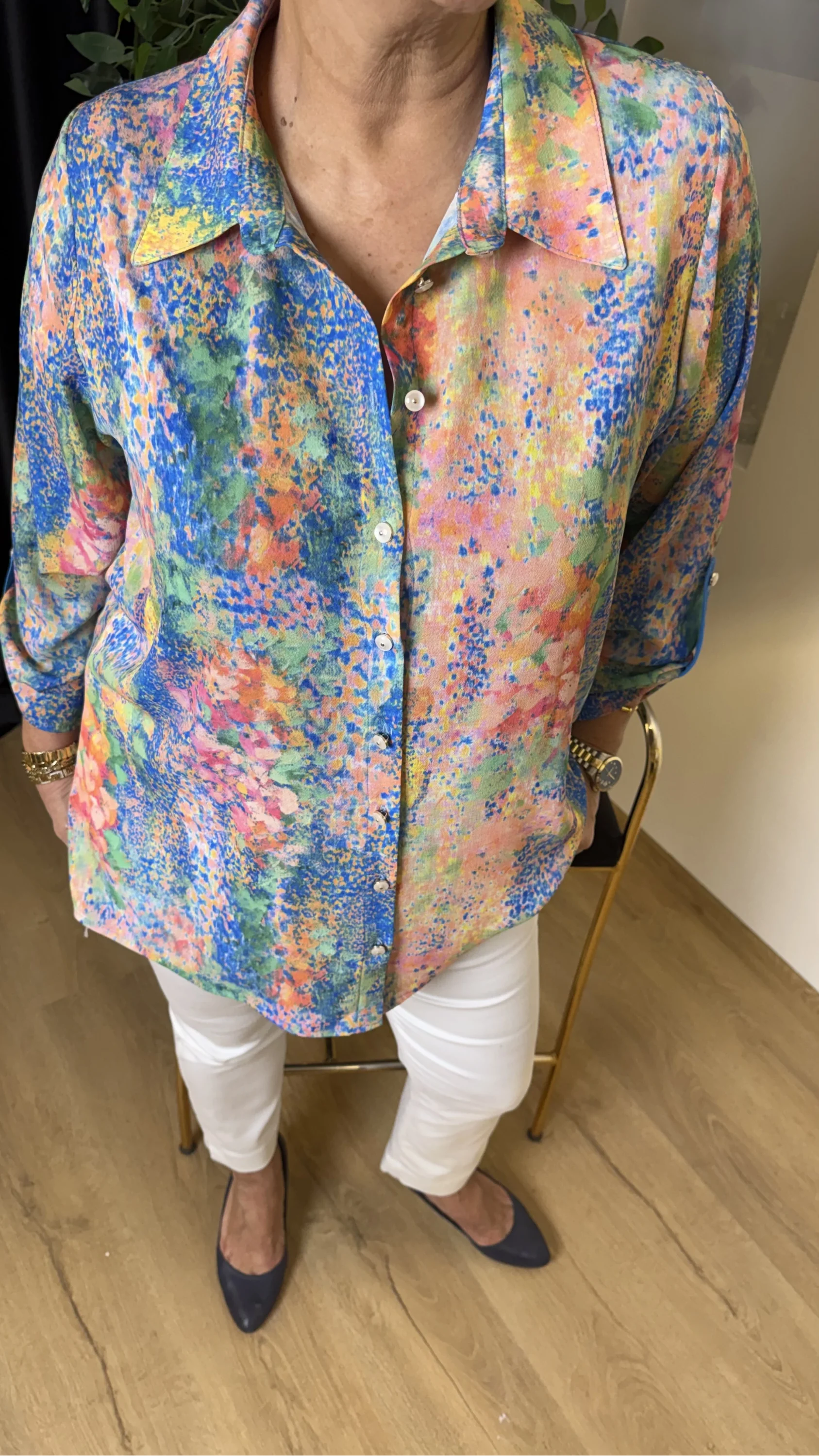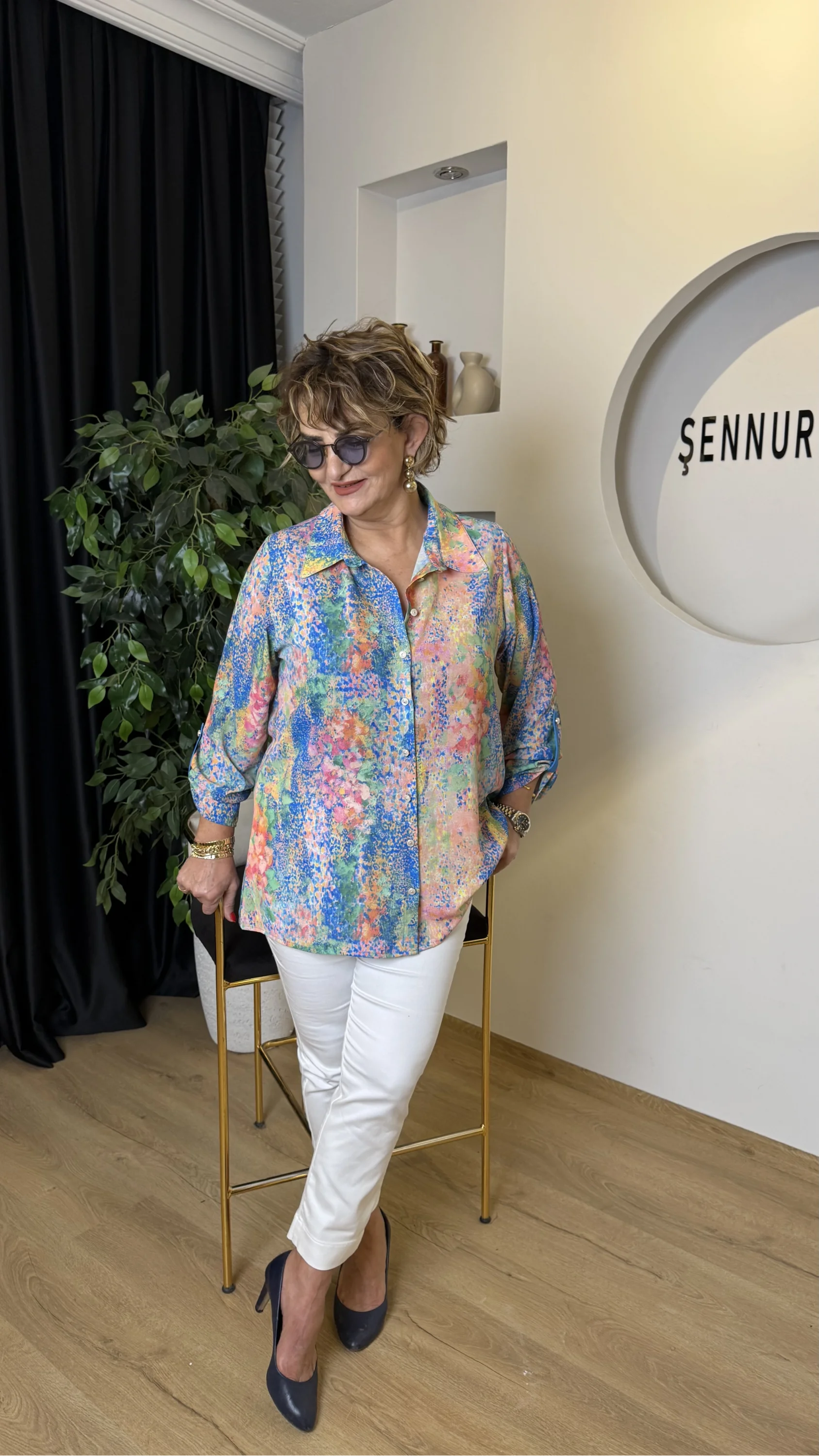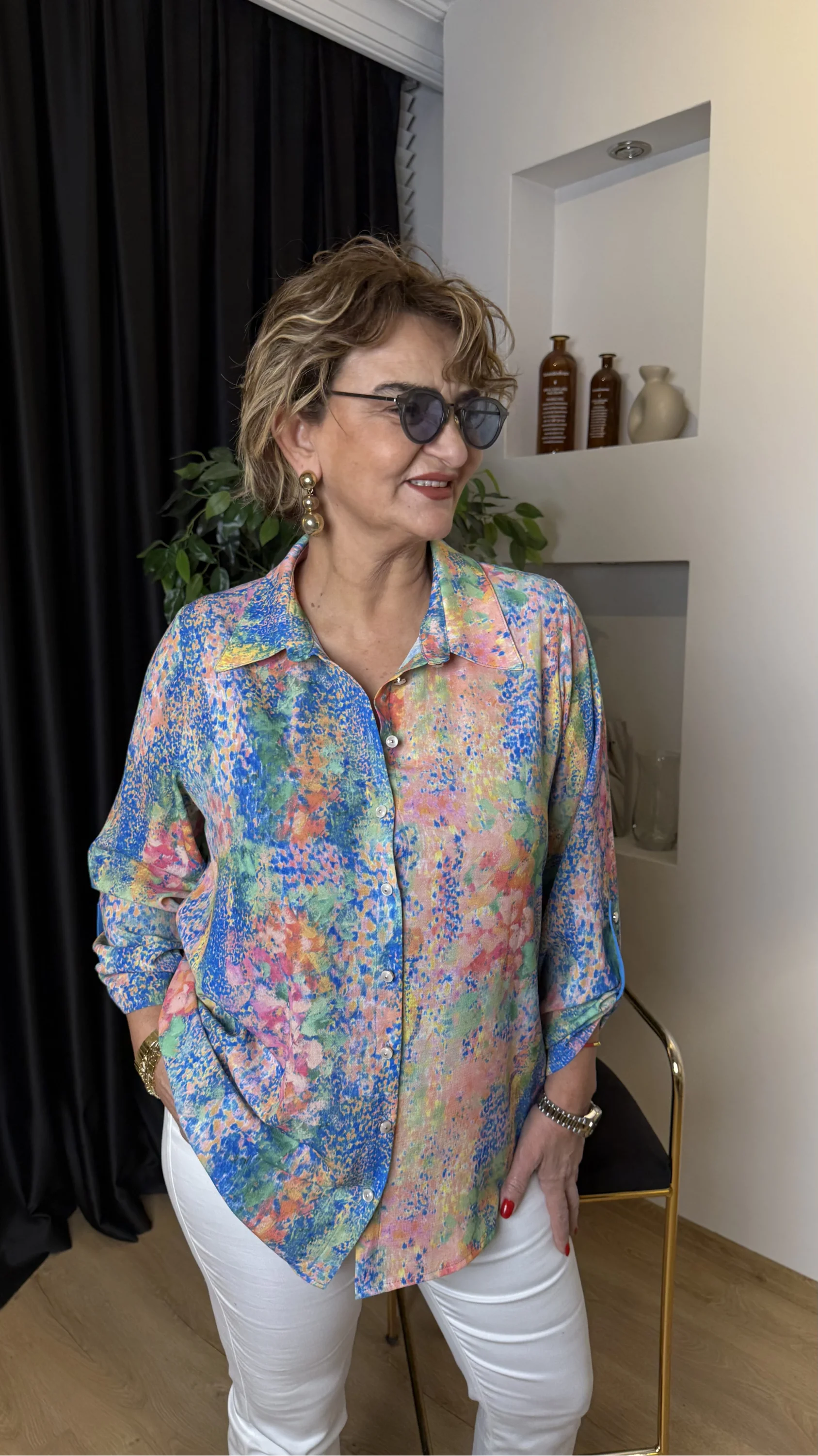 Renkli Desenli Krep Gömlek 26-1110