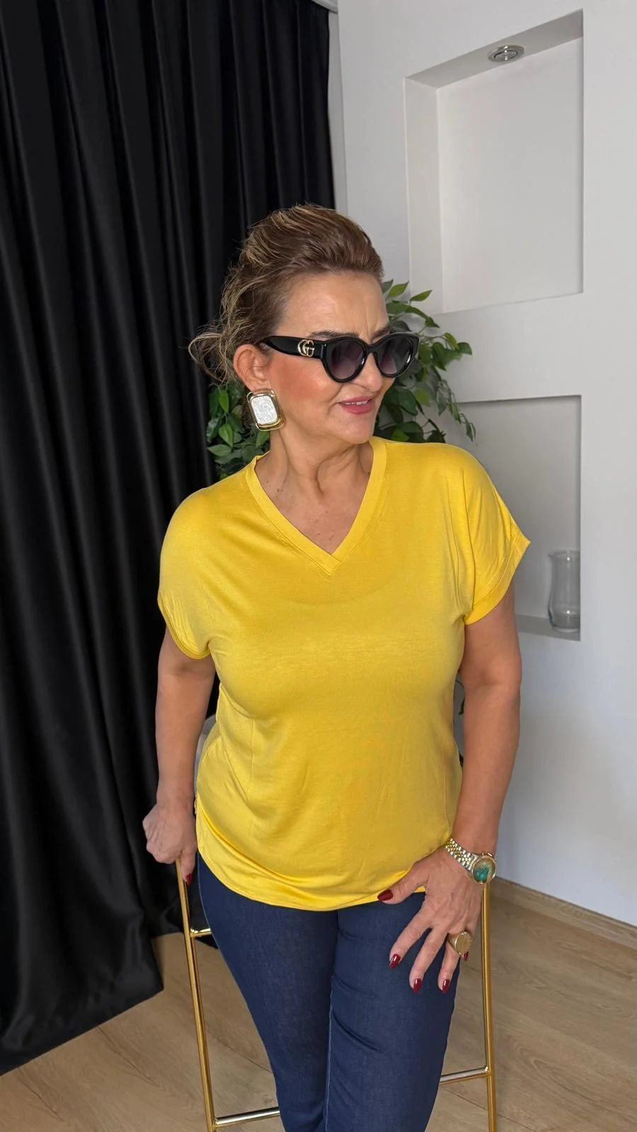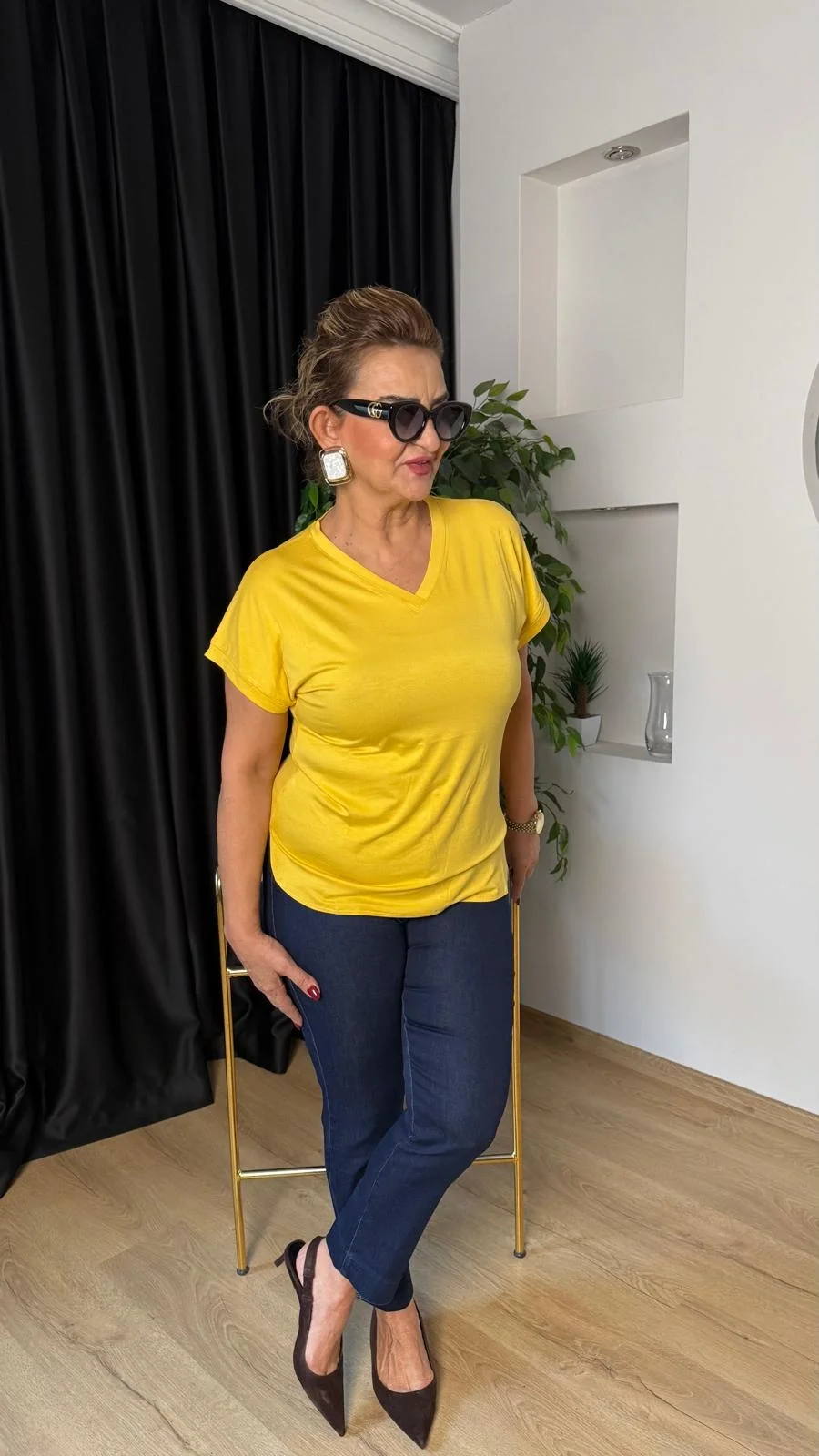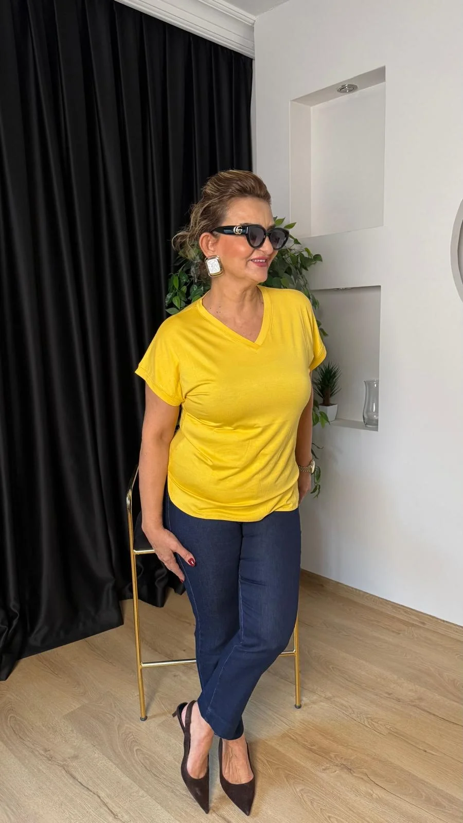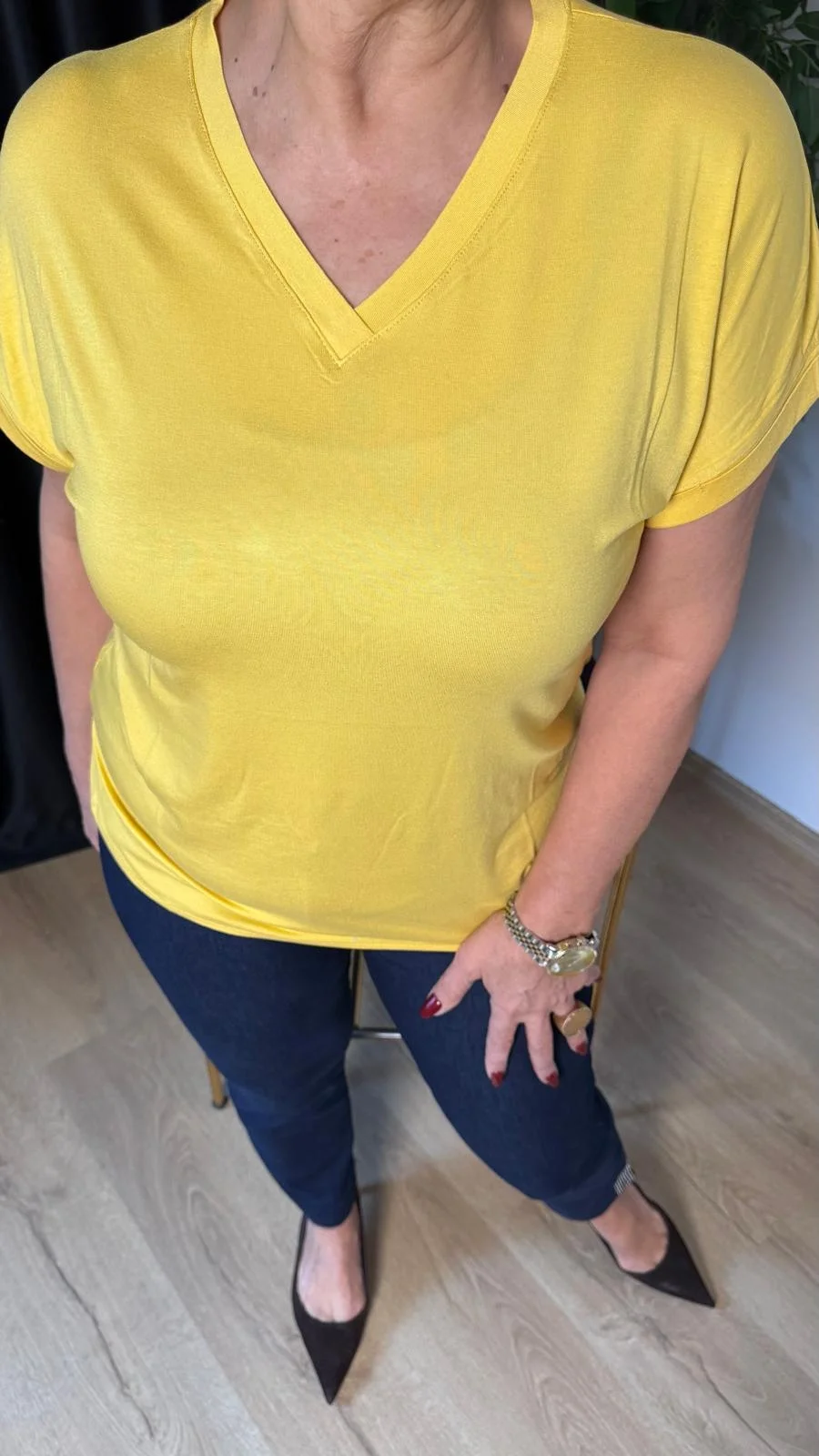Sarı Basic V Yaka Tişört 25Y2005
