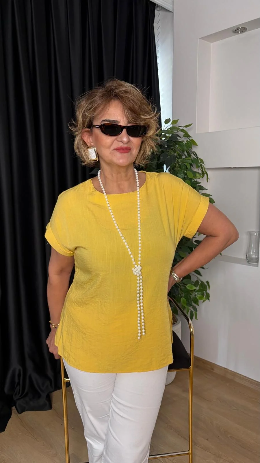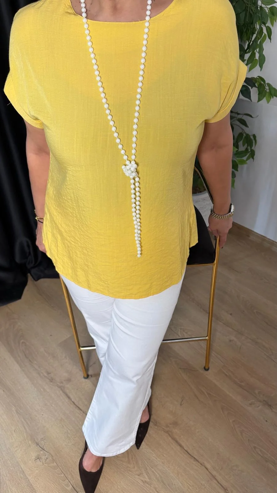 Sarı Düşük Kol Basıc Bluz 20128