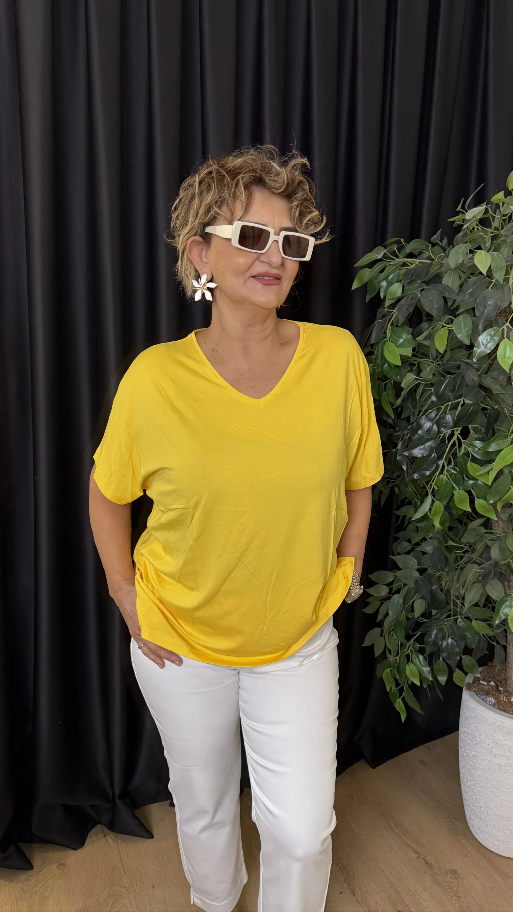 Sarı V Yaka Bluz 612