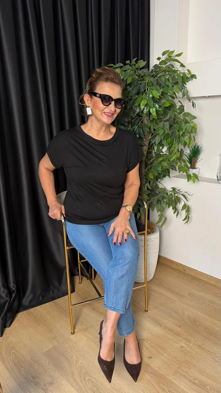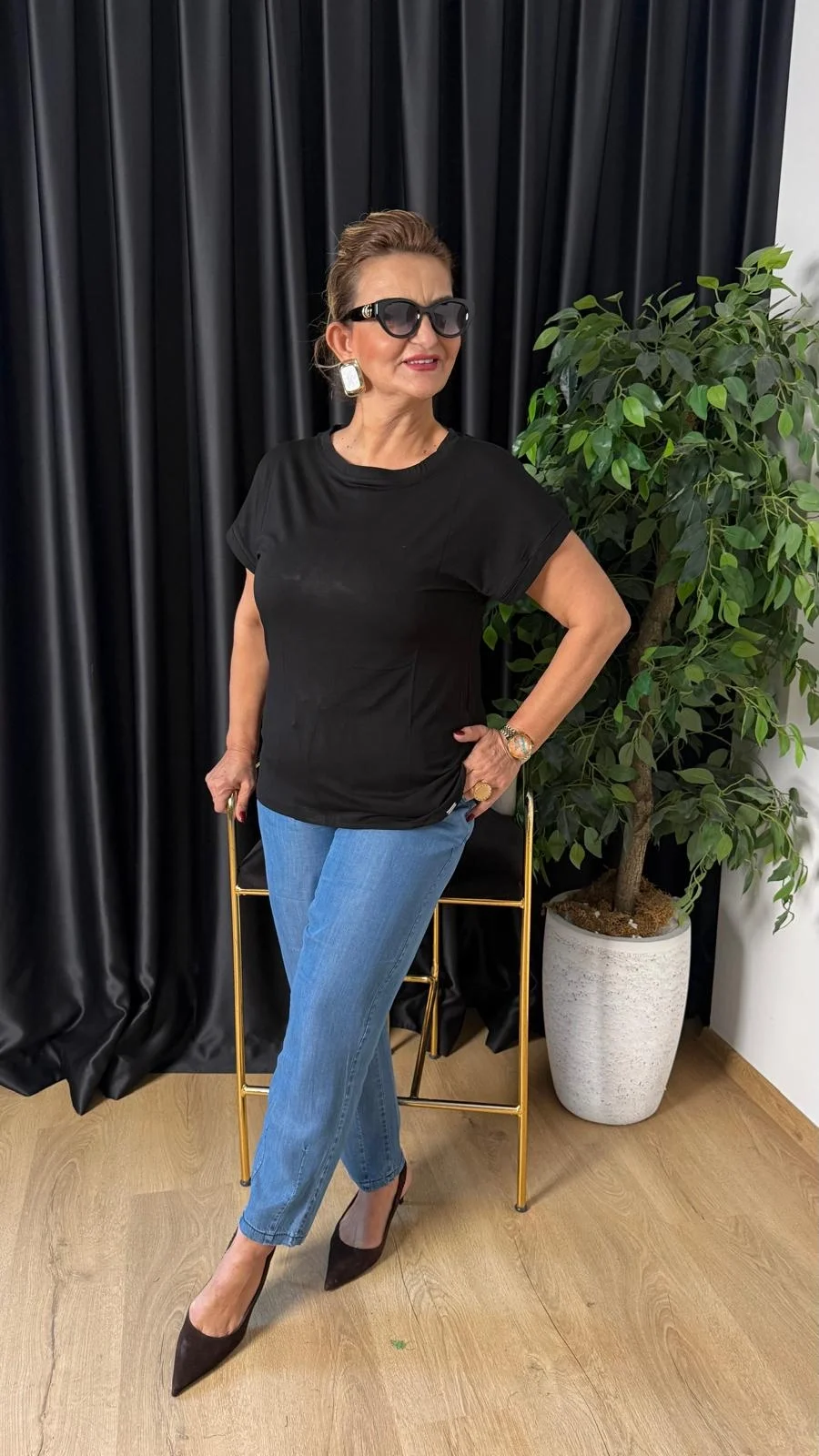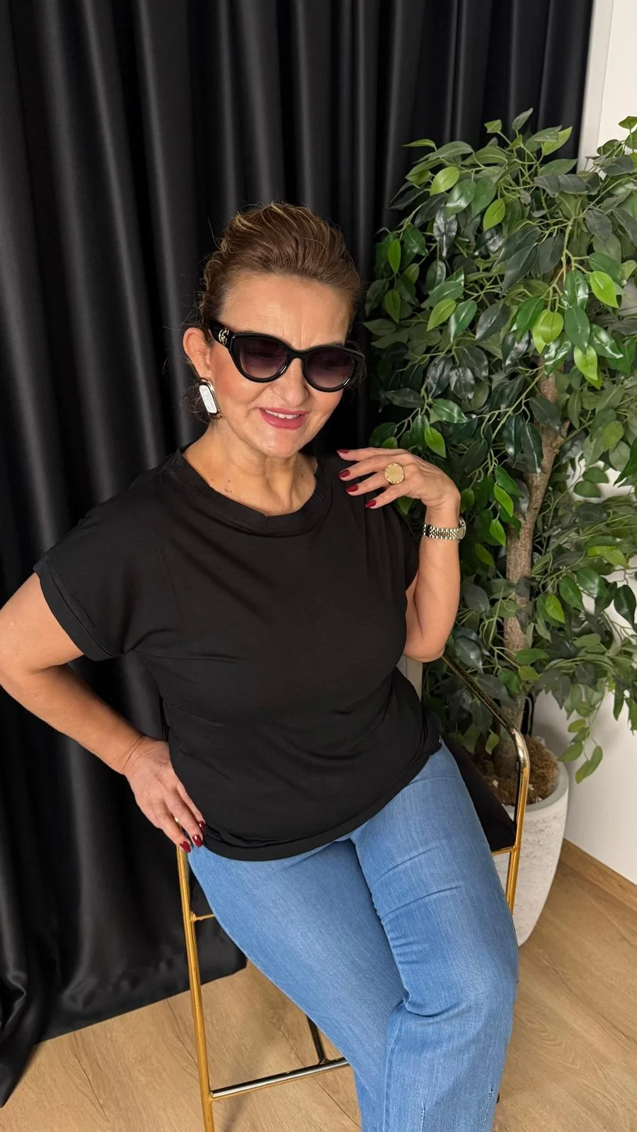 Siyah Basic Yuvarlak Yaka Tişört 25Y2004
