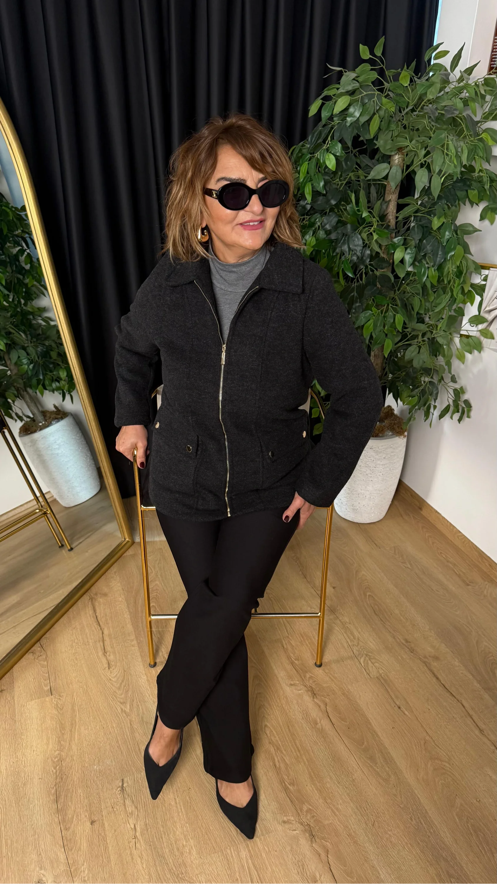 Siyah Cep Kapaklı Fermuarlı Kaban 91547