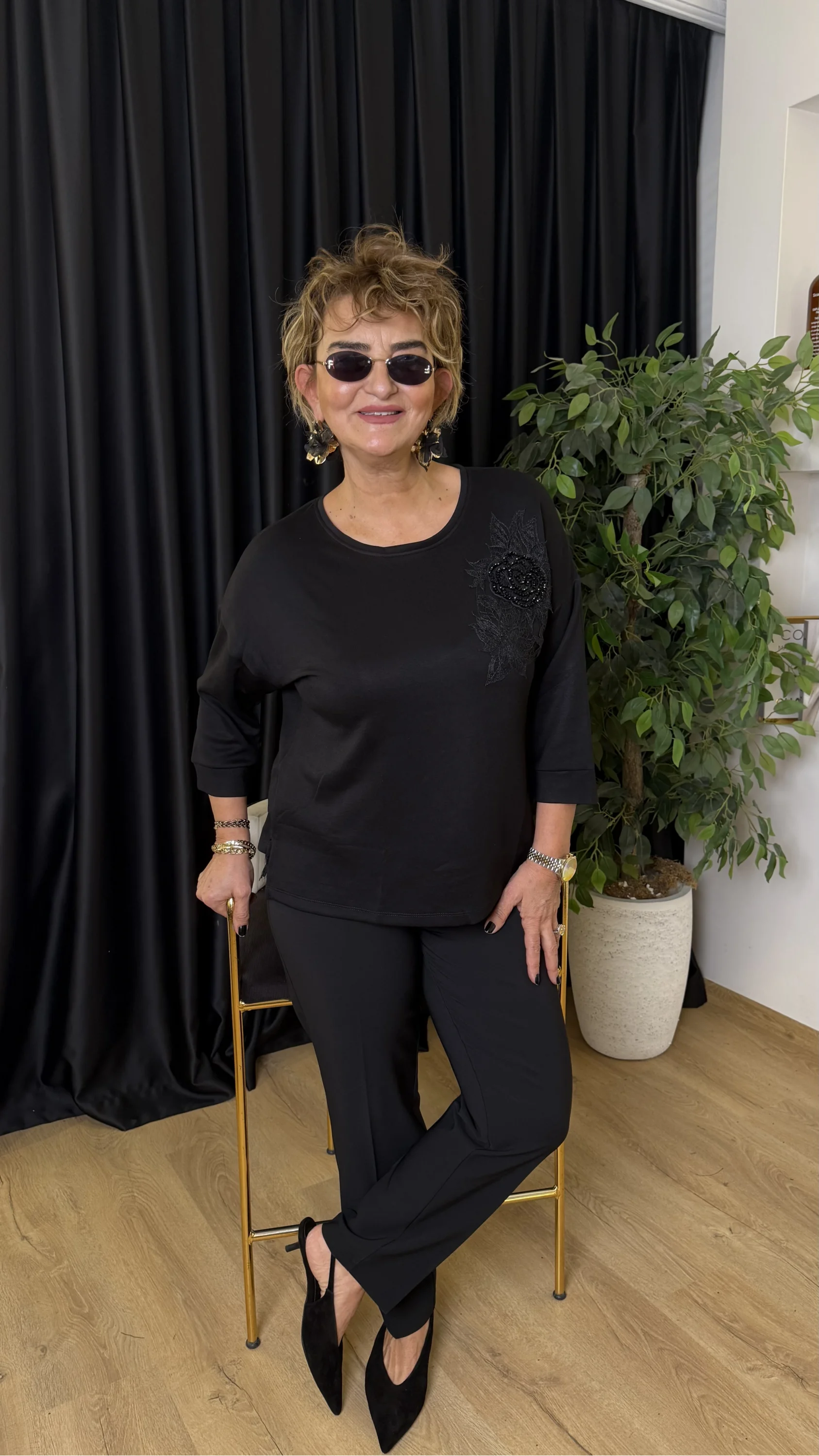 Siyah Dantel Detaylı Bluz 5567