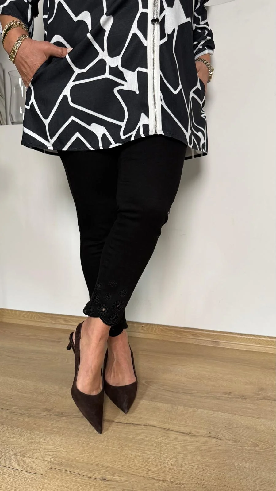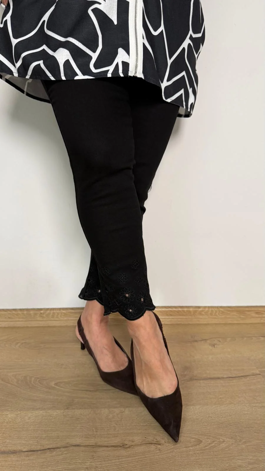 Siyah Papatya Nakışlı Pantolon P401