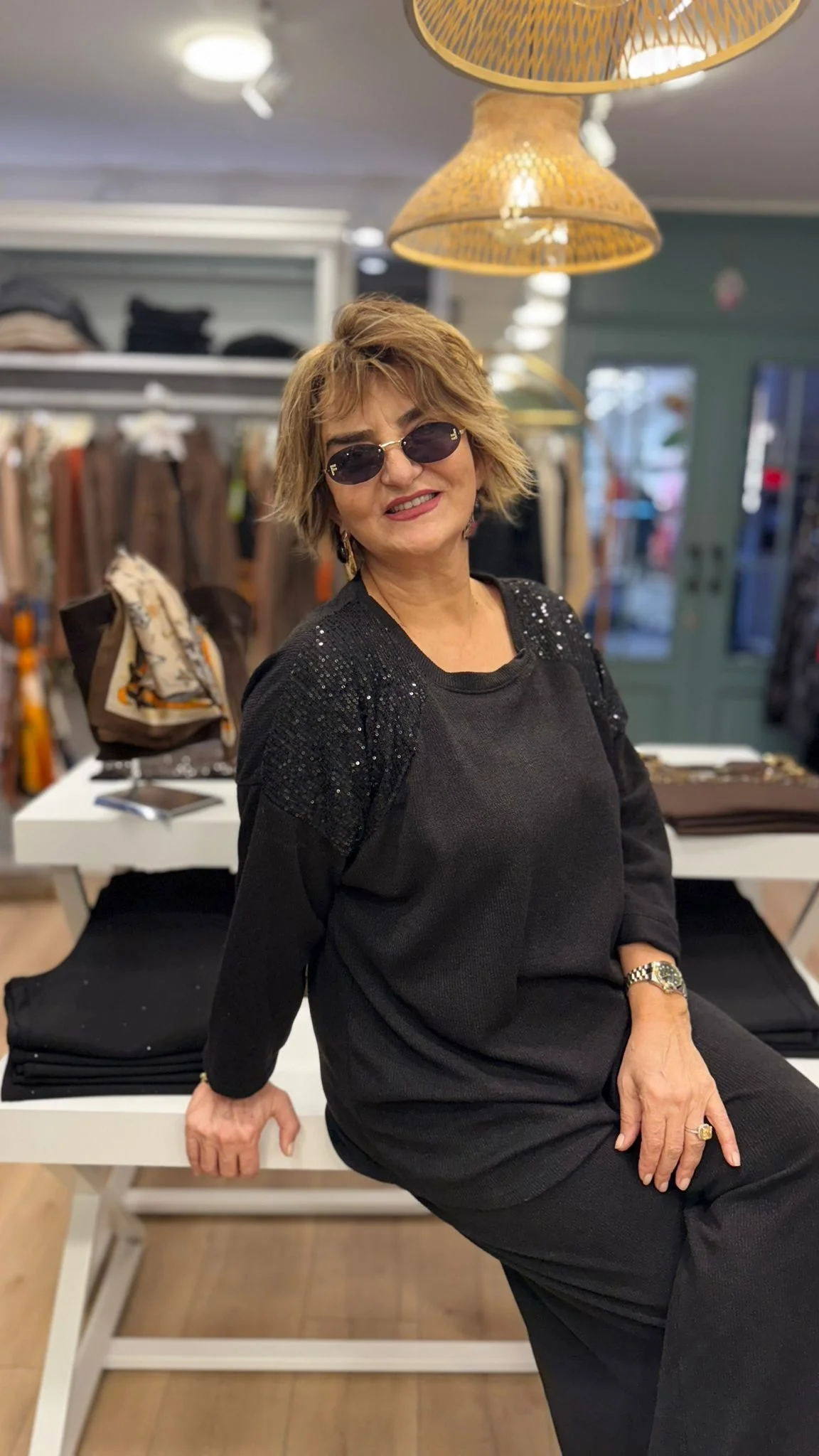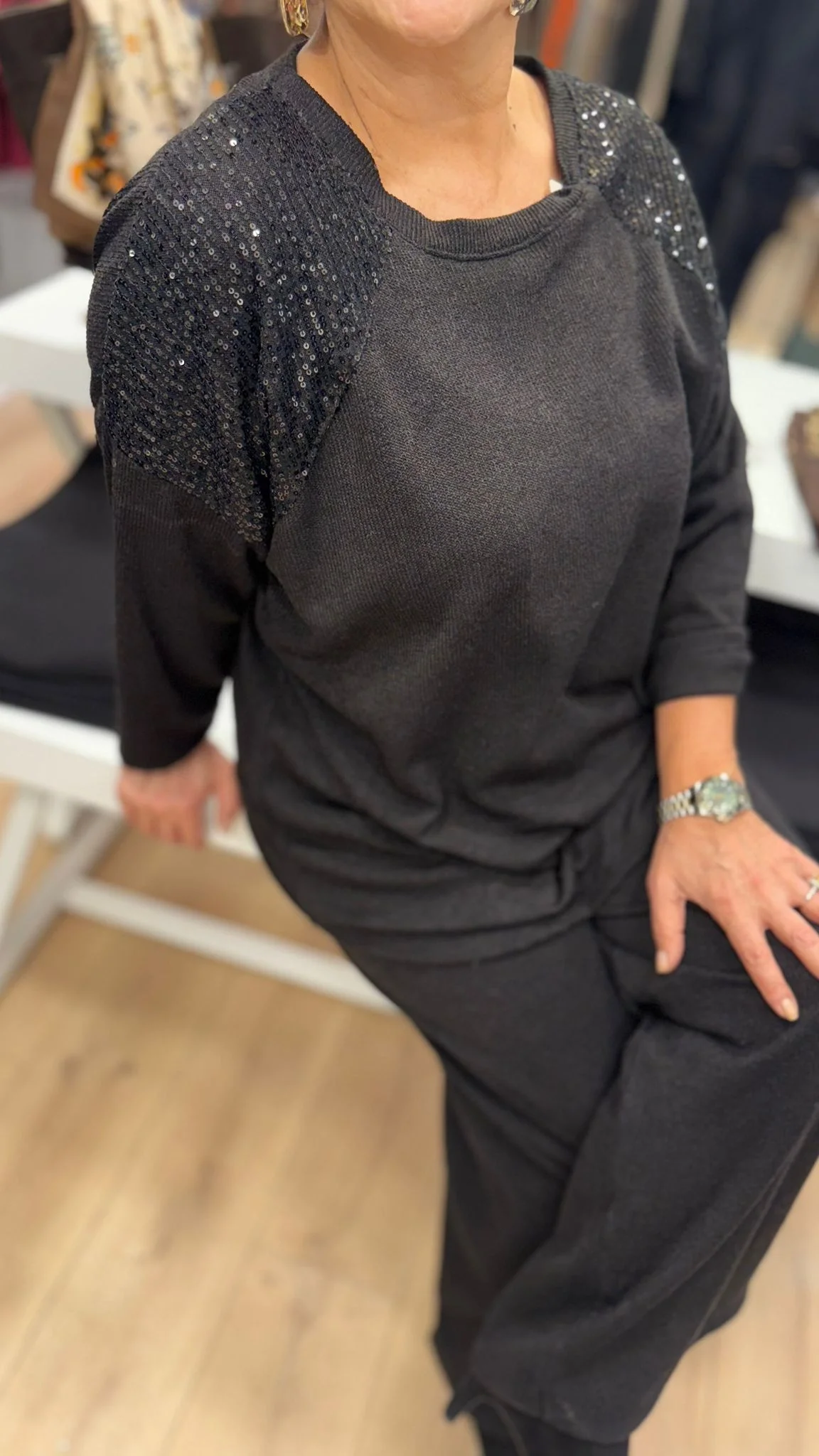 Siyah Pullu Örme Takım Y2735
