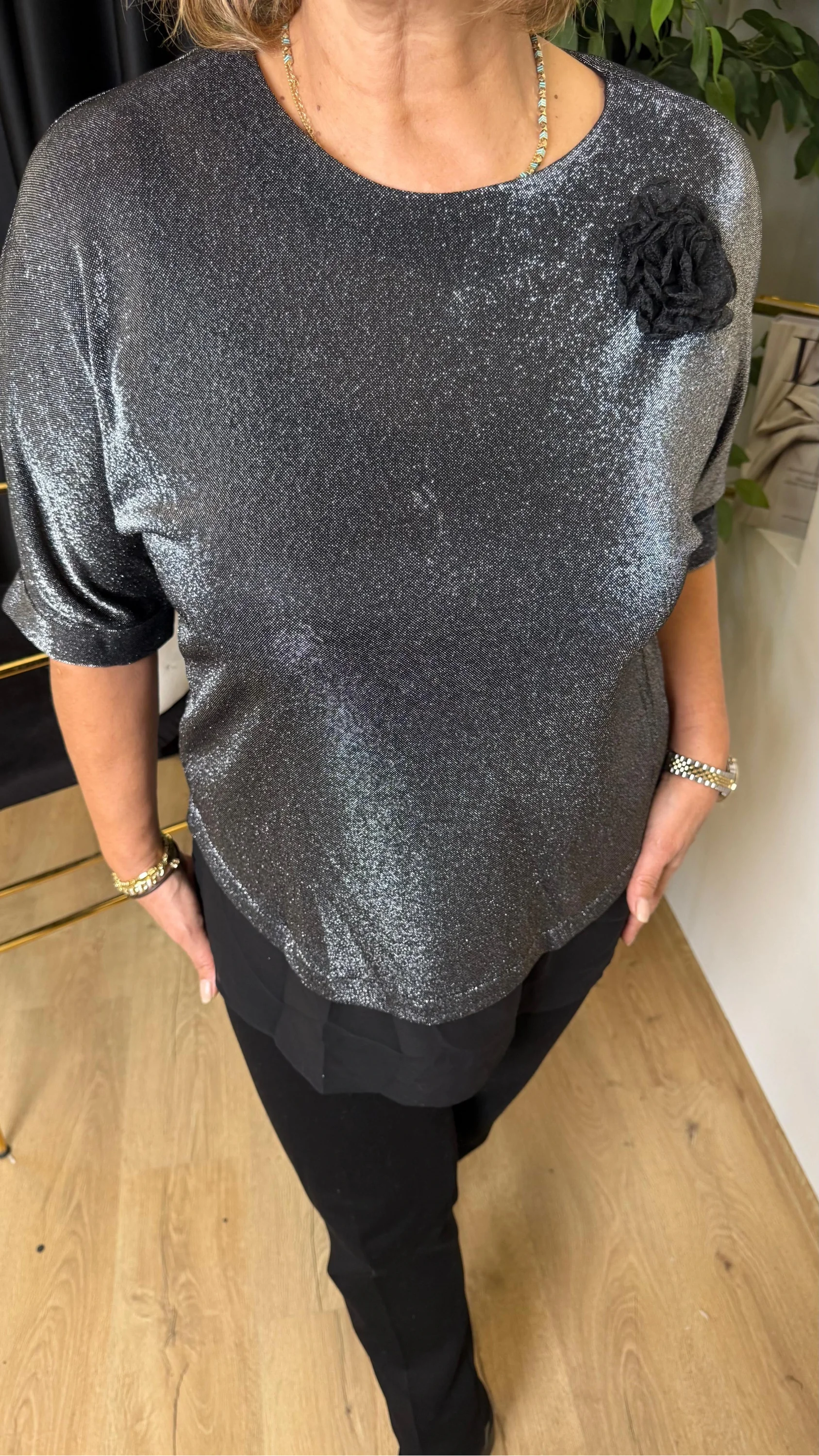Siyah Simli Çiçek Broşlu Bluz 20305