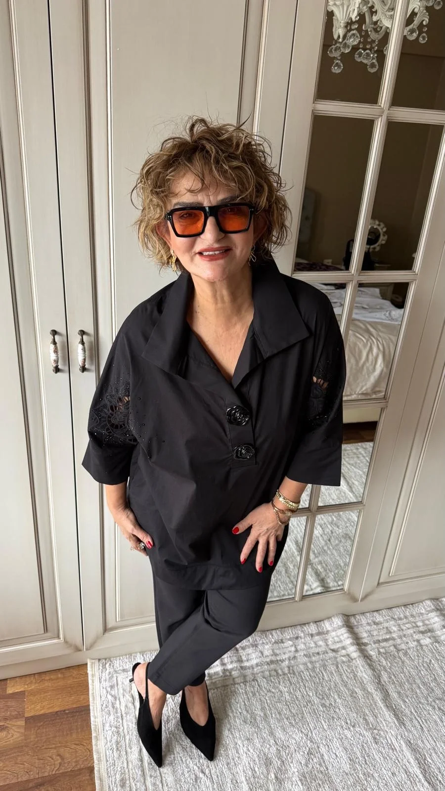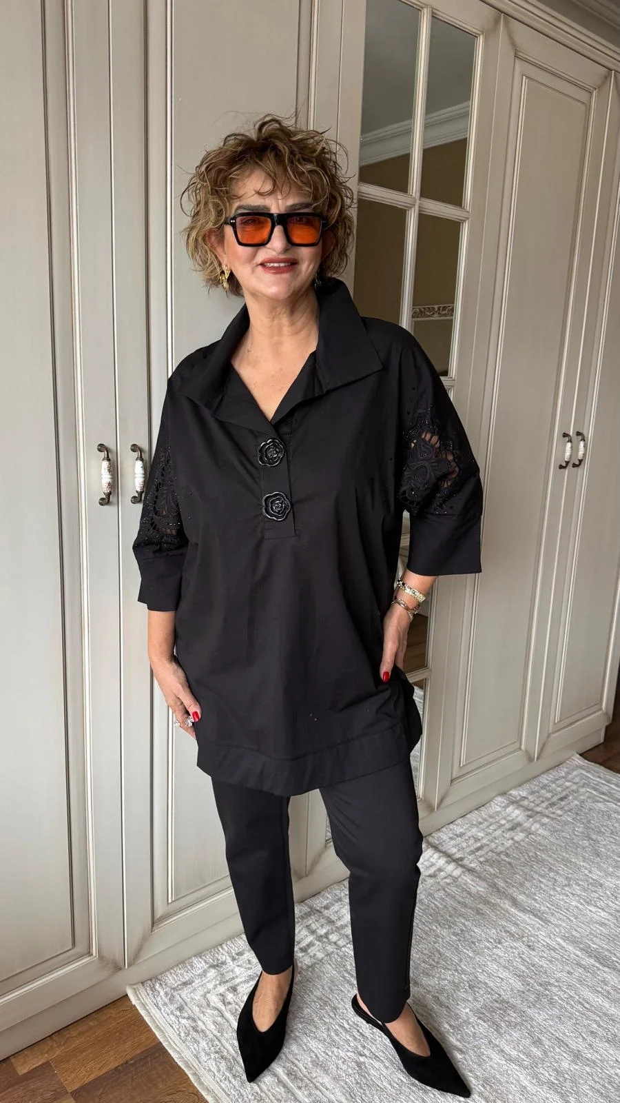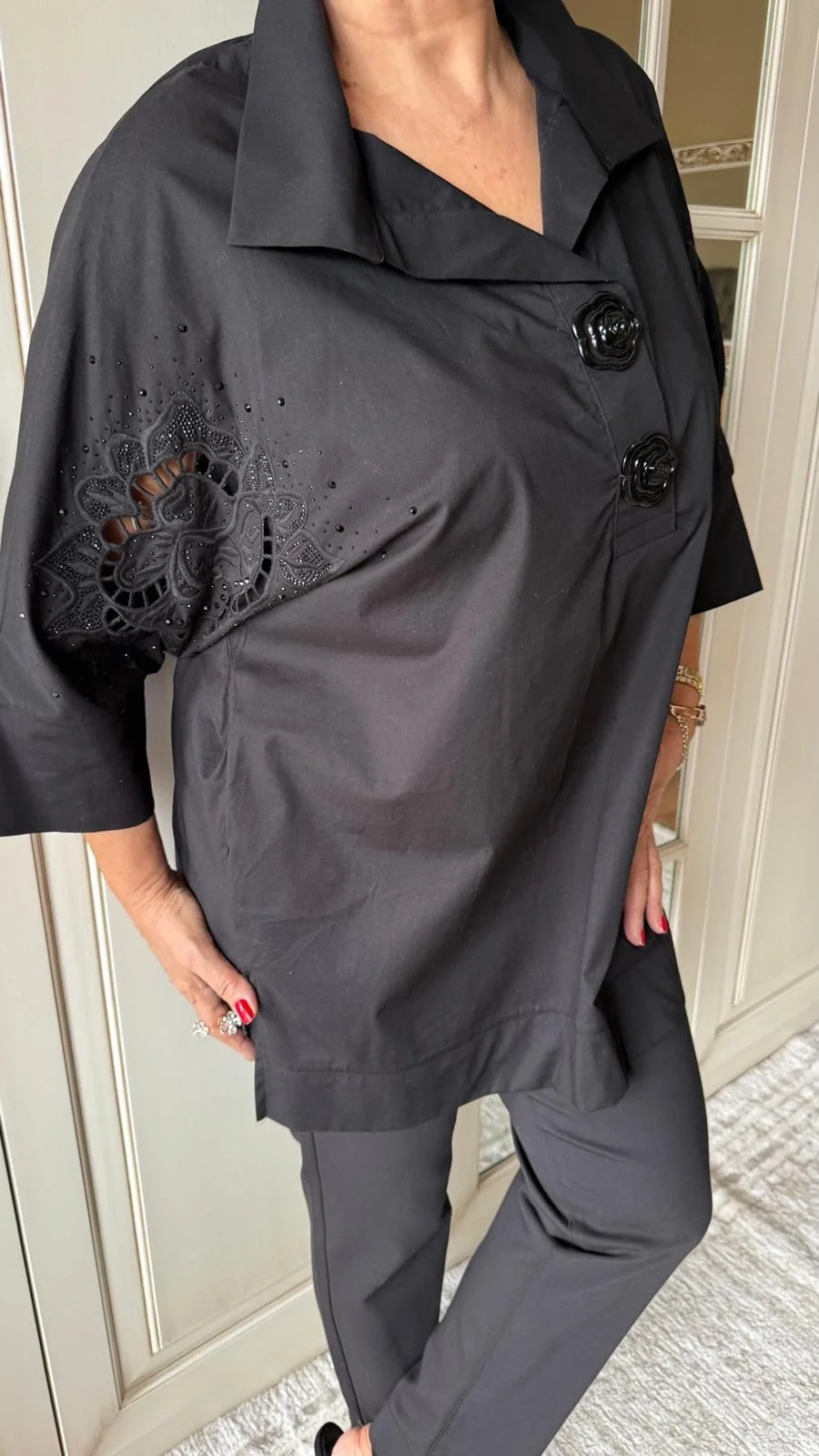 Siyah Taş Desenli Bluz 6915