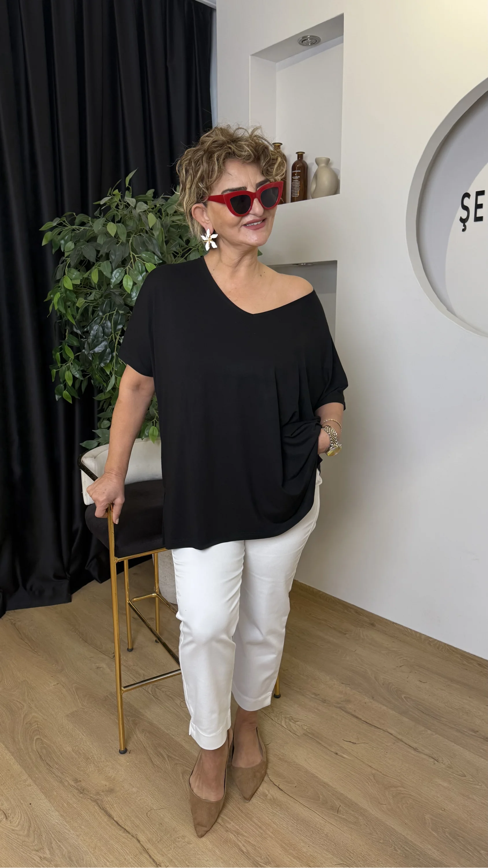 Siyah V Yaka Bluz 613