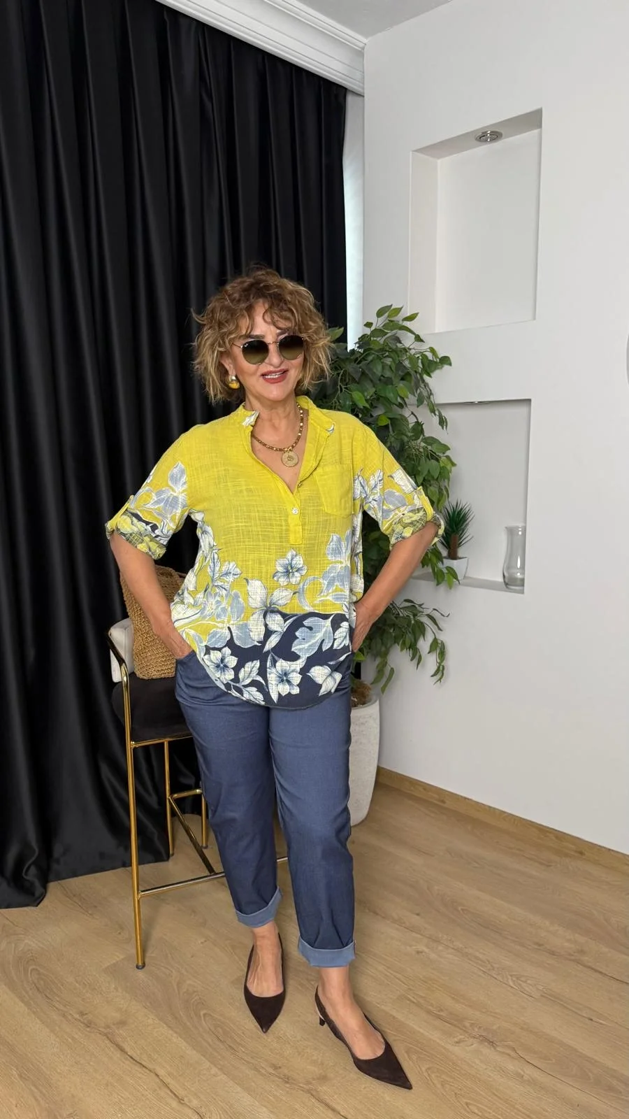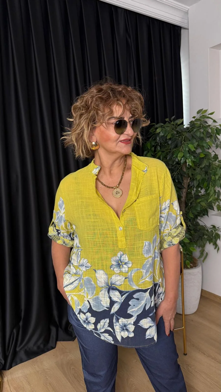 Yağ Yeşili Desenli Bluz 15455-26