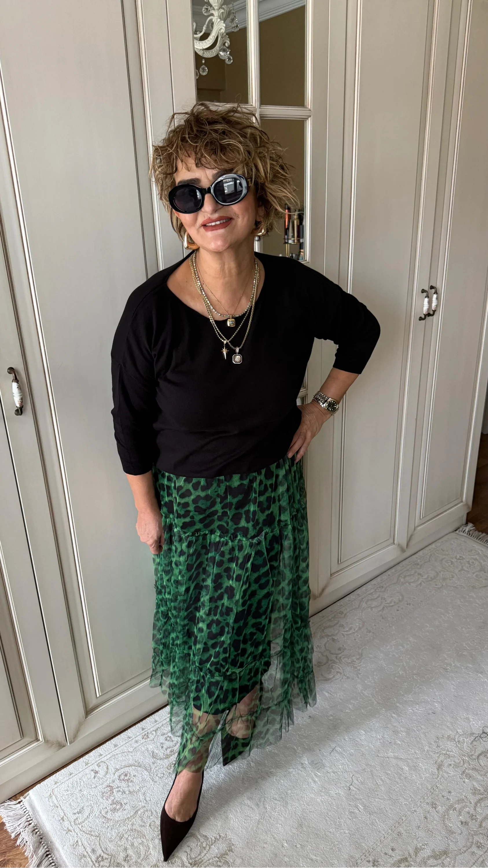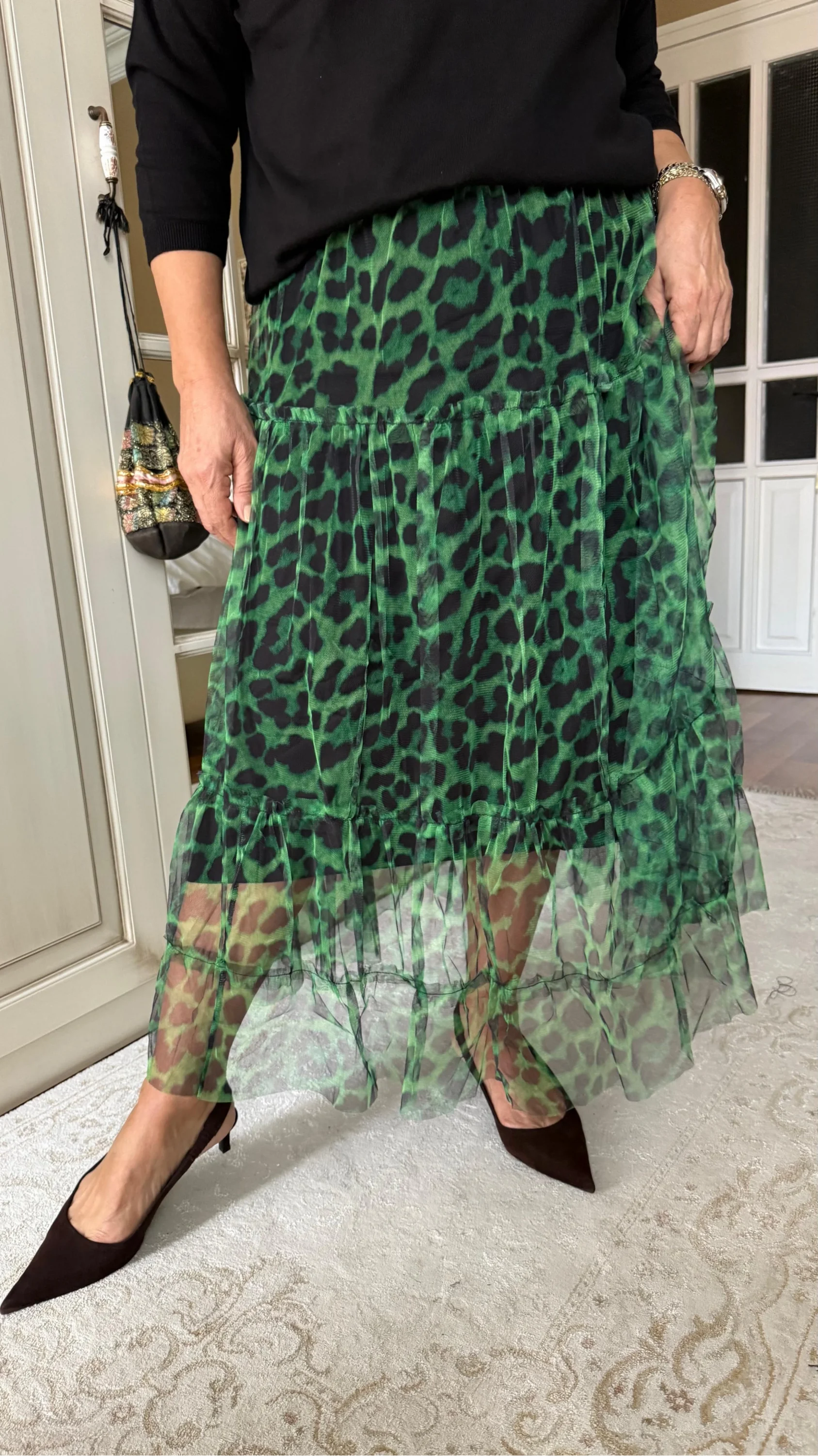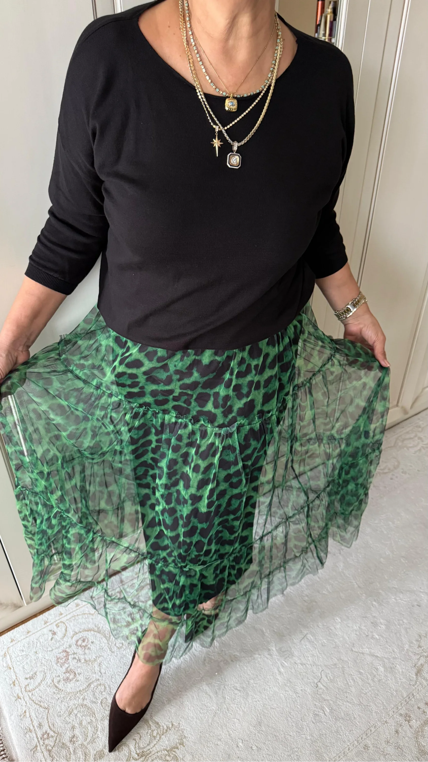Yeşil Desenli Katlı Tül Etek 2033