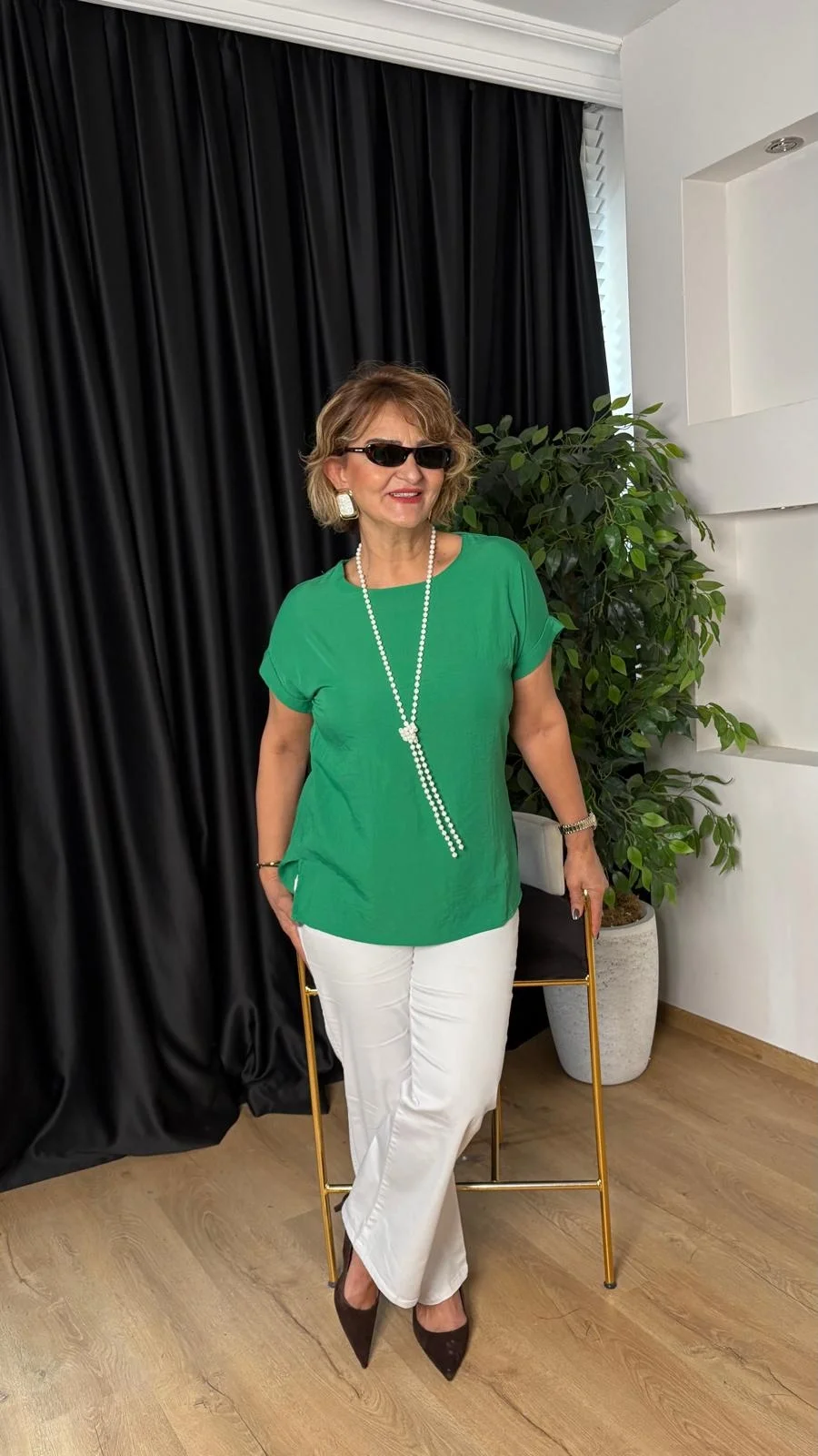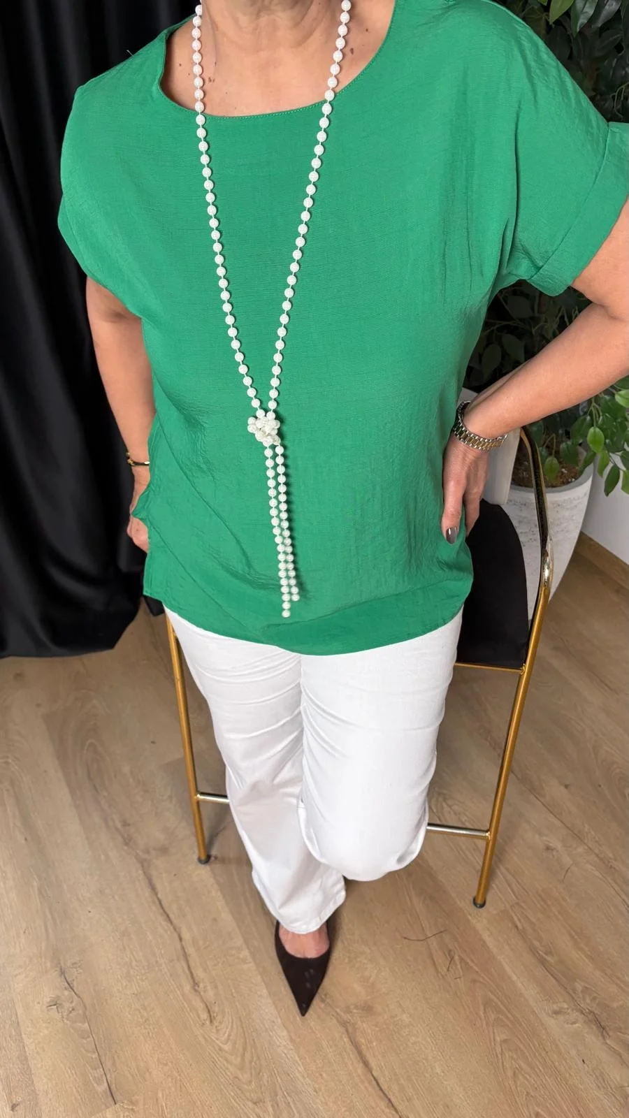 Yeşil Düşük Kol Basıc Bluz 20128