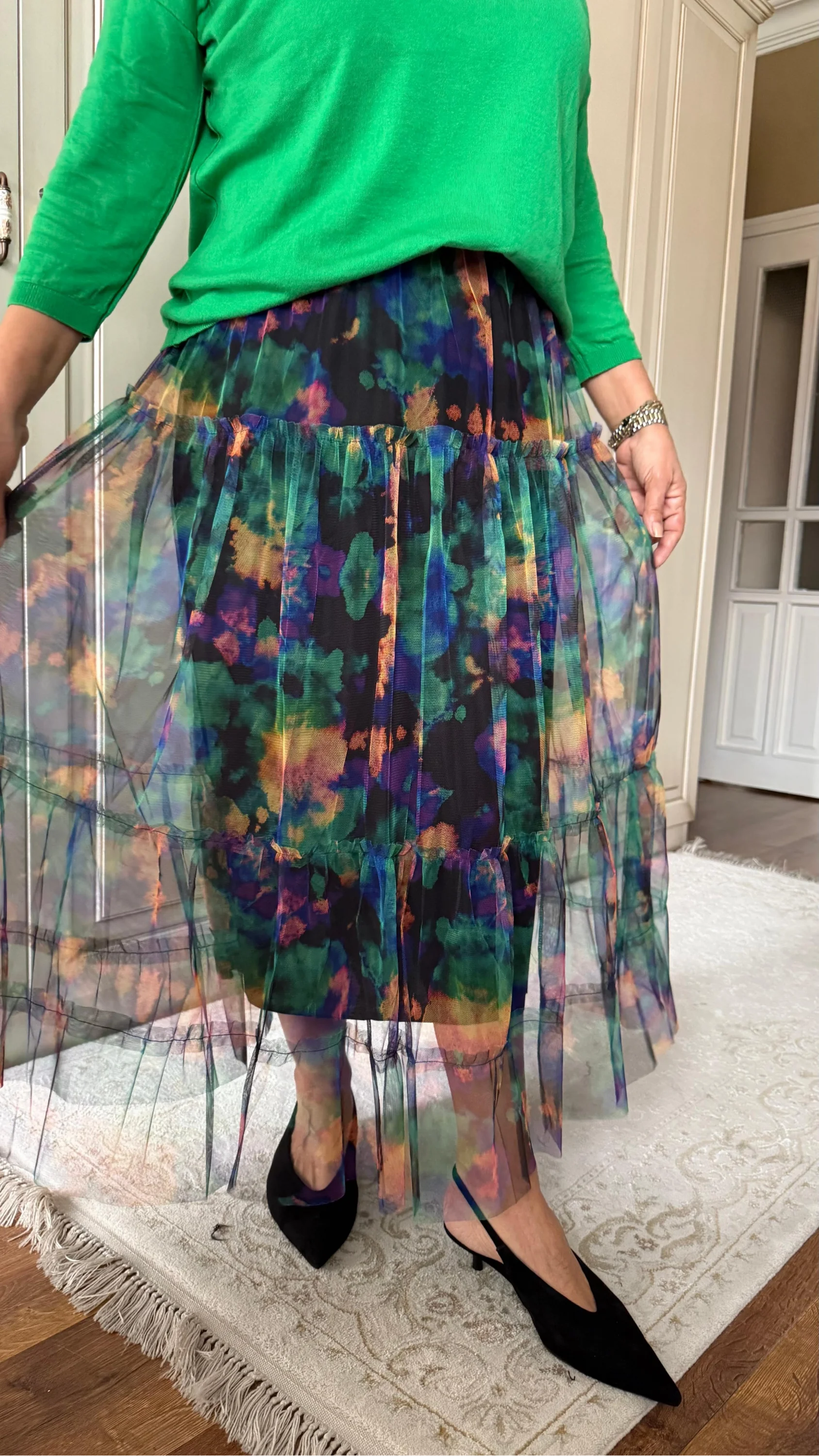 Yeşil Renkli Desenli Katlı Tül Etek 2033
